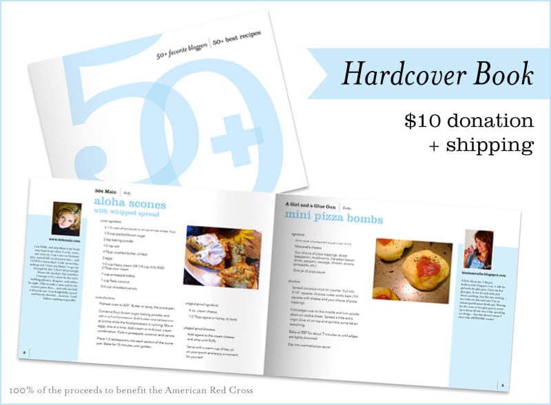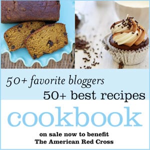 More than 50 bloggers donated one of their favorite recipes to be complied into an incredible cookbook, designed by chickabug (design talent was 100% donated as well). All proceeds from this great little cookbook are being donated to the American Red Cross to help those affected by recent natural disasters.