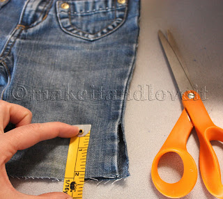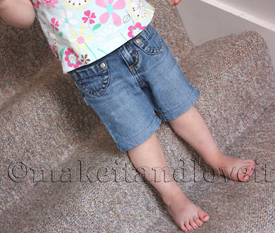 Do your little kiddos/nieces/nephews/grand kids grow way too fast? Are they too tall for their pants from this past winter but the waist fits just fine? Well, keep on using them and chop them off into shorts.