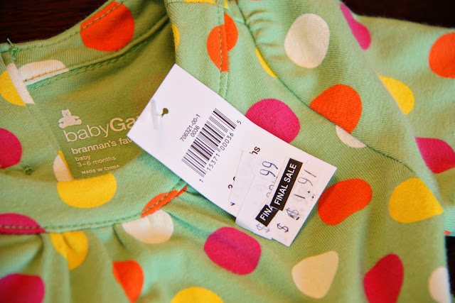 I found the two items below at The Baby Gap for $1.97 each. And then all sale items were 25% off, so I got them for $1.50 each. Stores always put out of season stuff on sale, to make room for the new stuff.