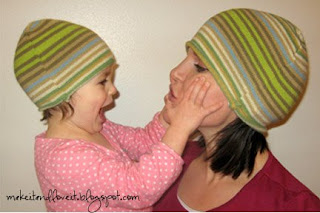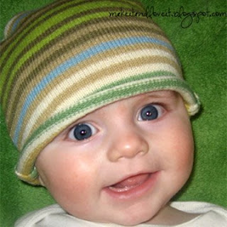 I had some sweater left so I measured my little guy’s head and made one for him. Too easy, too fun, and too cute!