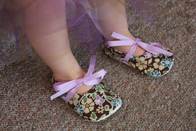 Okay, and I had these little shoes that I wanted to give-away…..so I made a tutu that matched. And a little ‘ol bow. Girls are sure fun to dress. I promise the next kid giveaway will be for a boy. They are fun too. Just not as cute wearing a bow in their hair.
