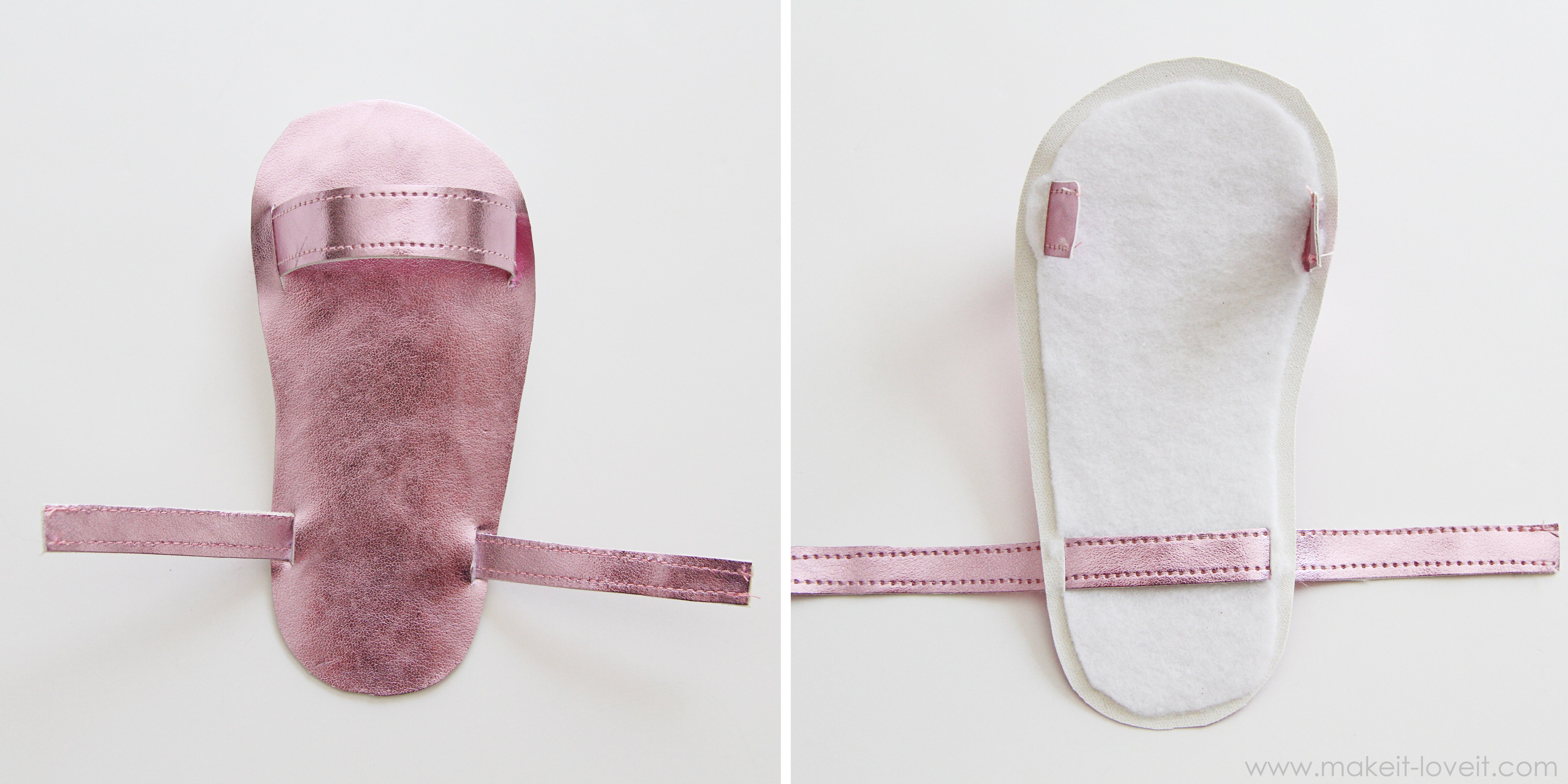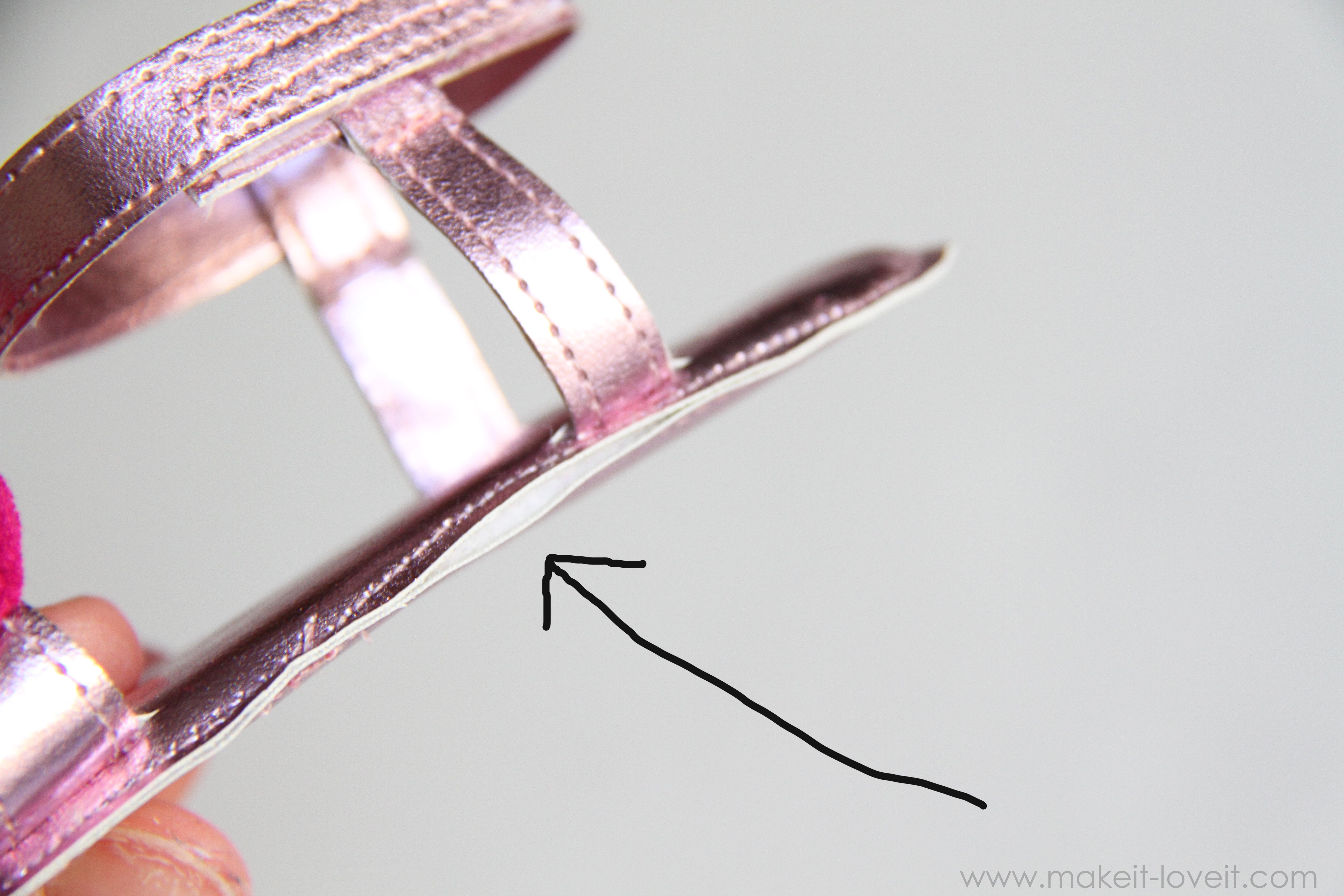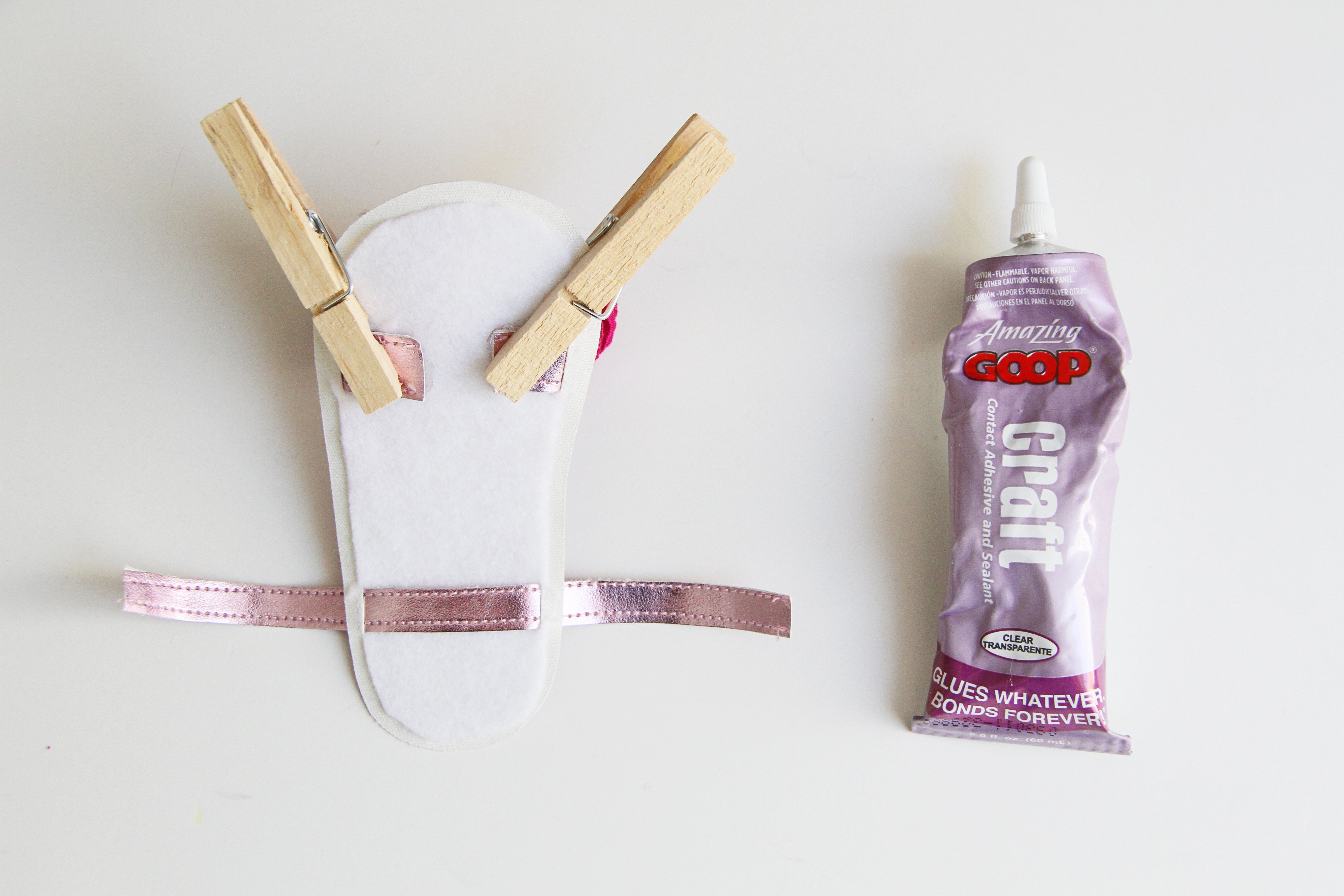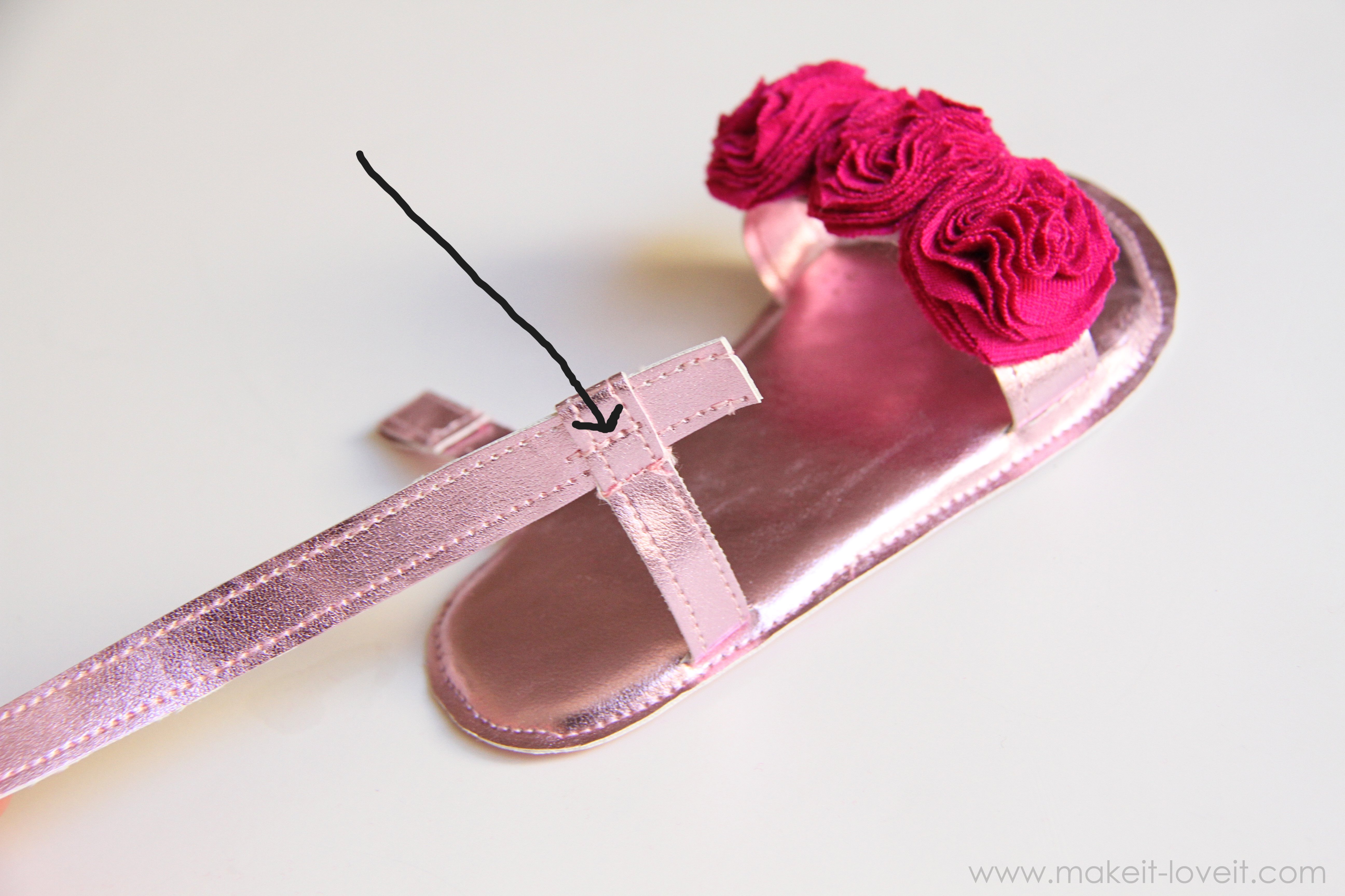 Then place the strap back through the top sole of the sandal and then pin it down in place.