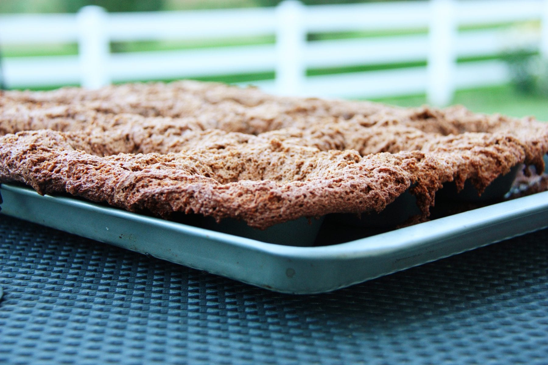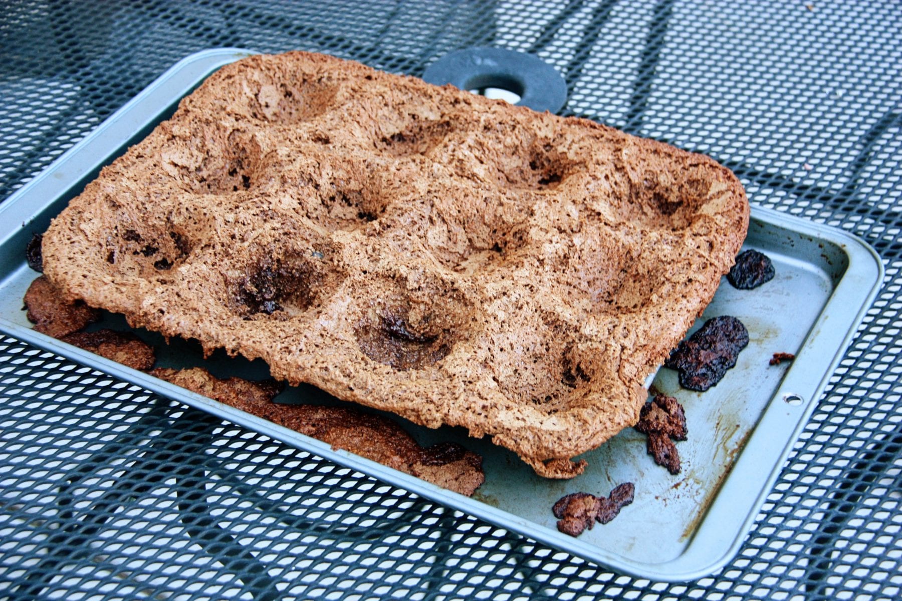 But was it really because I messed around with the agave nectar ingredient? Was it not enough liquid? Too much? I really did only use 1/2 teaspoon of baking soda. And yes, only 2 eggs. Those seem like the 2 reasons it could have really bubbled over like that…….and I know I used the right amounts of each. So the only thing I can think of is the agave substitution. I also haven’t used almond flour very much. But when I made some cookies with almond flour a few weeks ago, they were really flat……not super-charged and bubbled up.