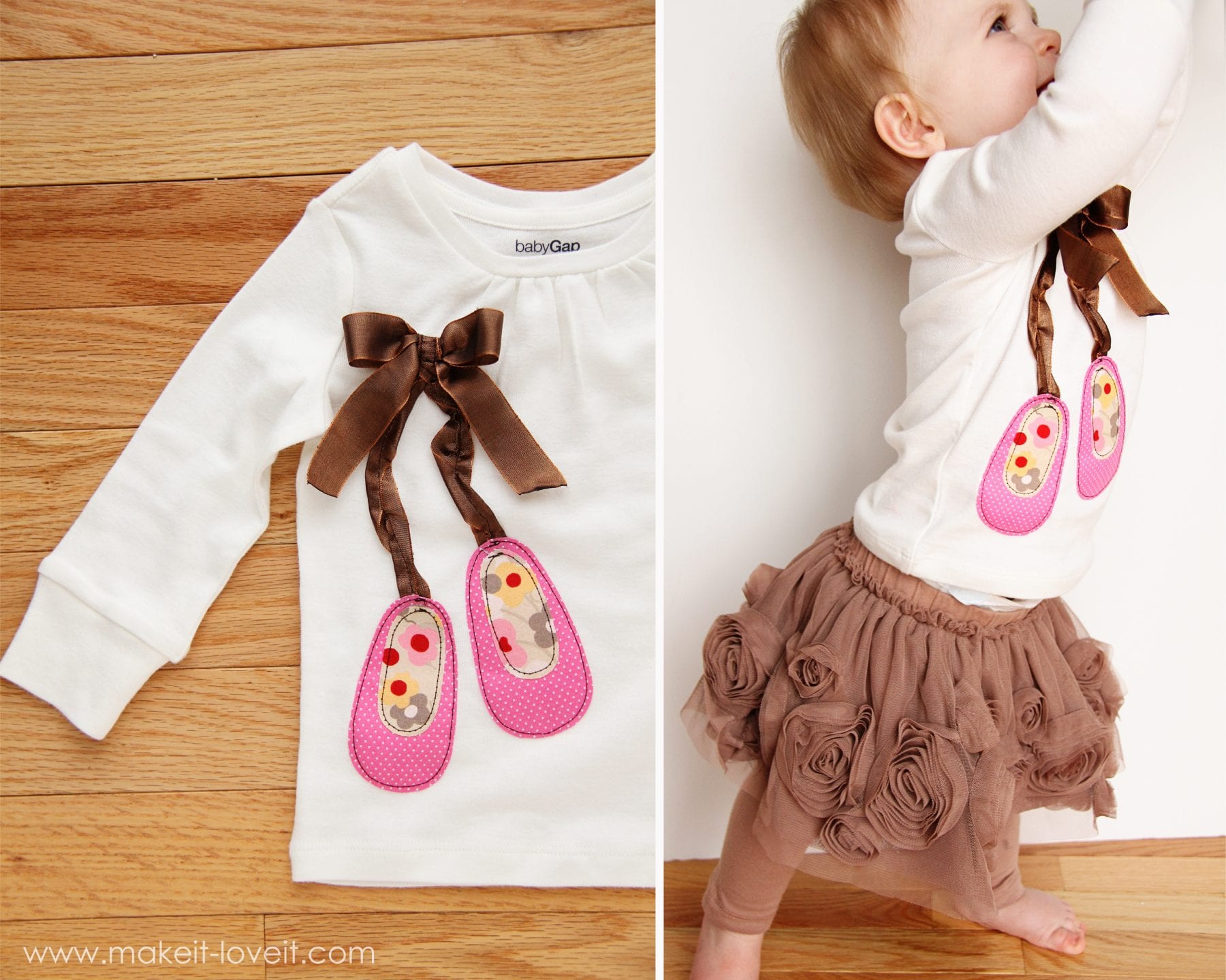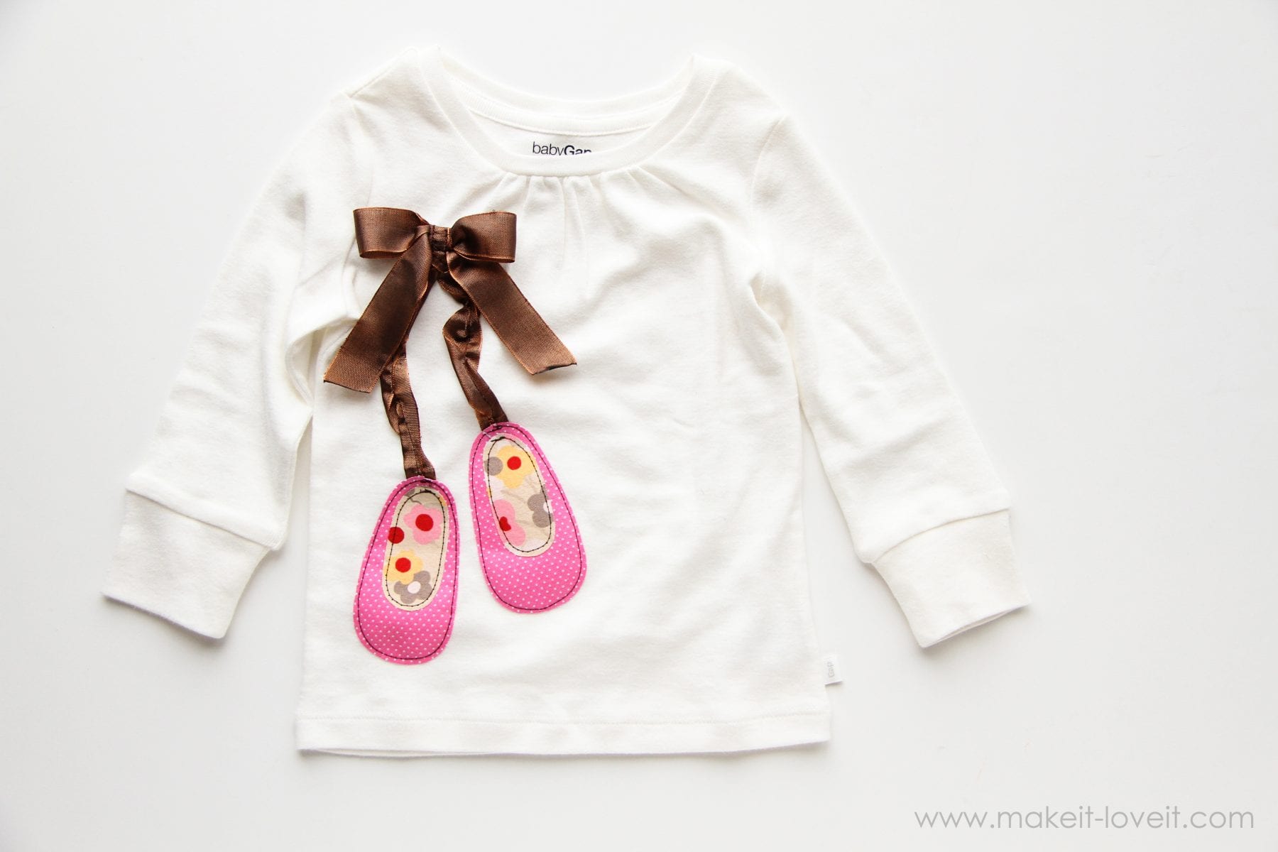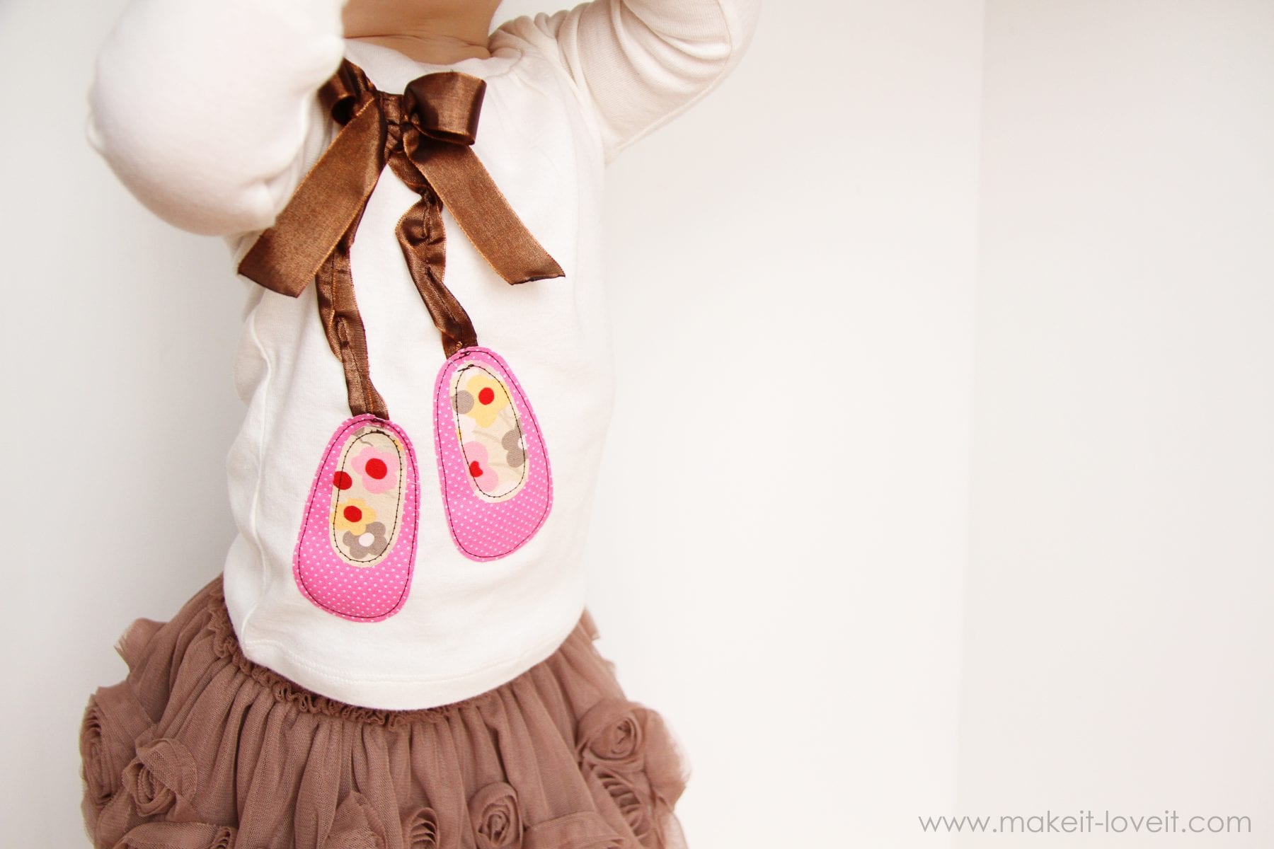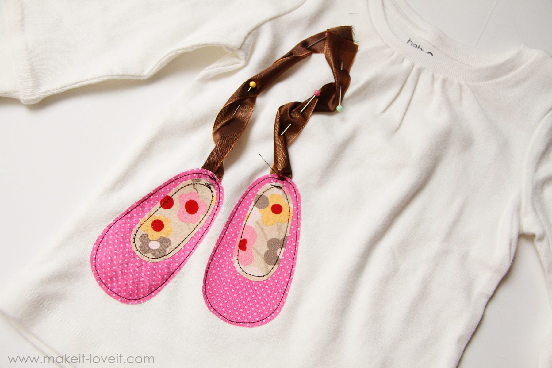 Home » DIY Tutorials » DIY Sewing » Sewing: Clothing » Baby Clothing » Ballet Shoe Applique on Shirt