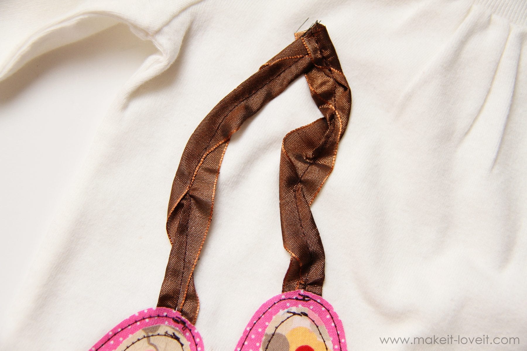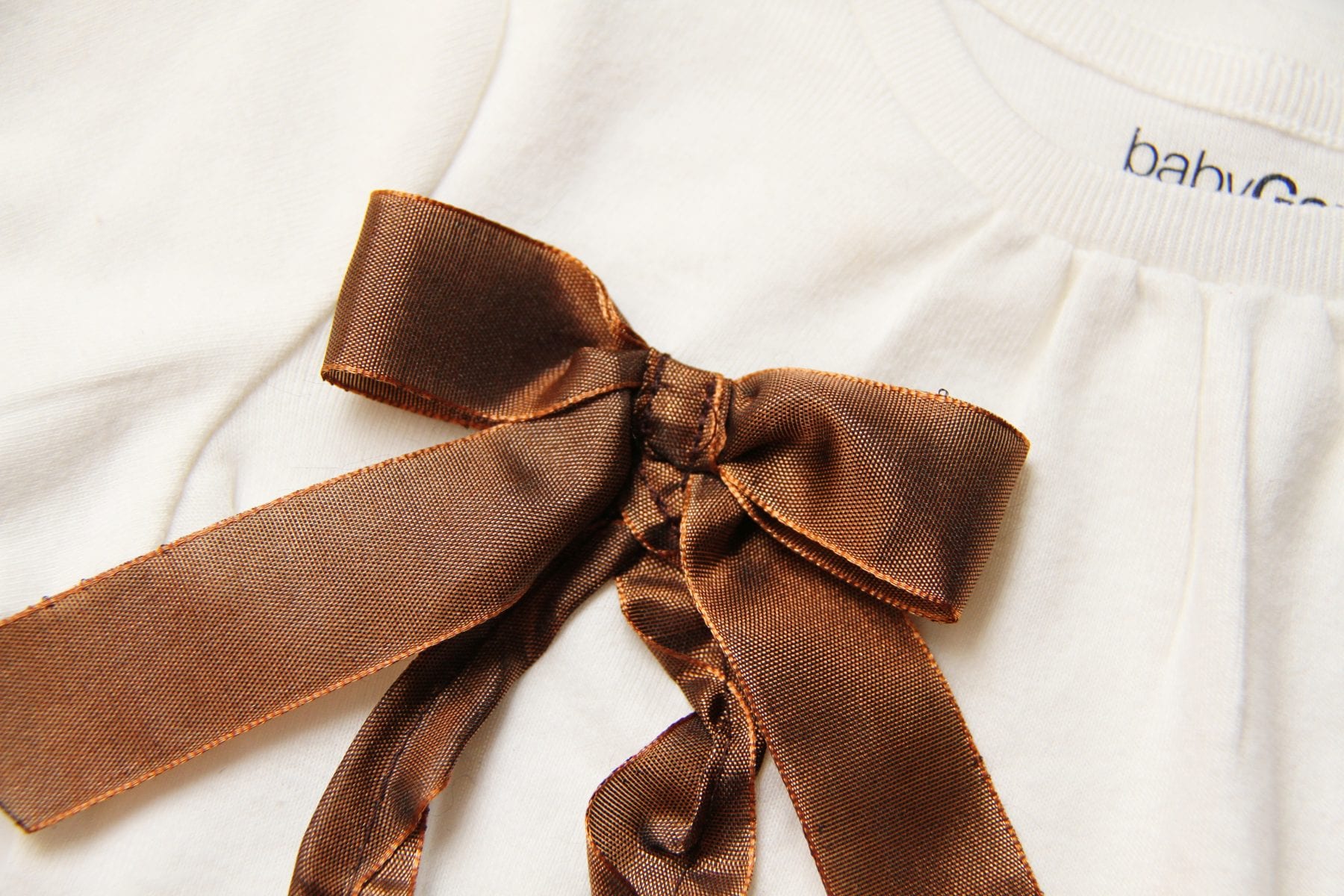 Then I tied a bow with the same ribbon and then sewed it right down to the shirt, covering the ends of the ribbons that were already sewn to the shirt.