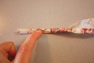 First fold your end in 1/4 inch and then fold each side in towards the middle (iron in place if needed)…..