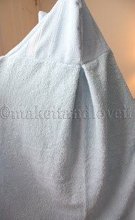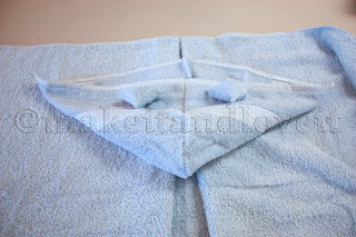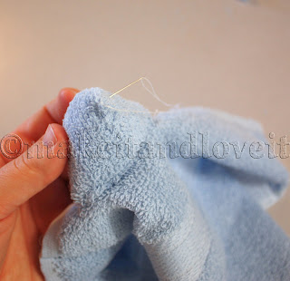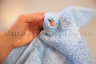 Now go and bathe your baby and cuddle him/her in their new snuggly bear towel. Okay, maybe it looks like cat ears too. (To keep it more rounded……….hand-stitch the back of the ear all bunched together instead of in a straight line.) Whatever you want it to be……..just name it.