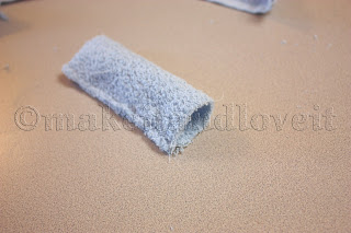 Then, from your scraps, cut out 2 pieces that are 3.5 x 5 inches. Sew in half lengthwise. Then turn right side out and place the seam up. Press flat with your hand.