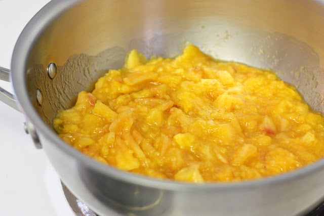Then I mashed up a few more peaches and placed them in a medium saucepan,