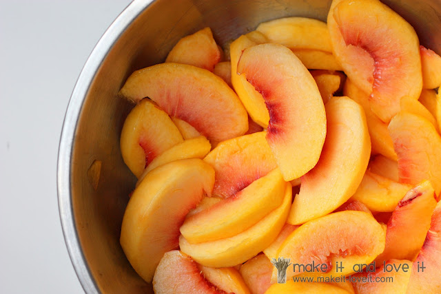 So yesterday, while my little monkeys were napping, I got right work……peeling and slicing those juicy peaches.
