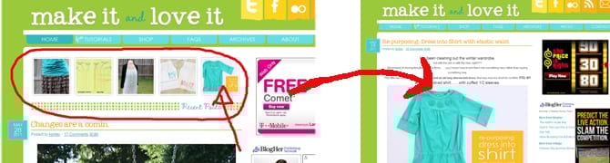 Then, you’ll see there’s a row of pictures towards the top of the blog. Those are 5 of my most recent projects. You know, in case you haven’t been around in a few days….and you want to see what you’ve been missing. You can just click on one of those images………..and then it will take you to the full tutorial.