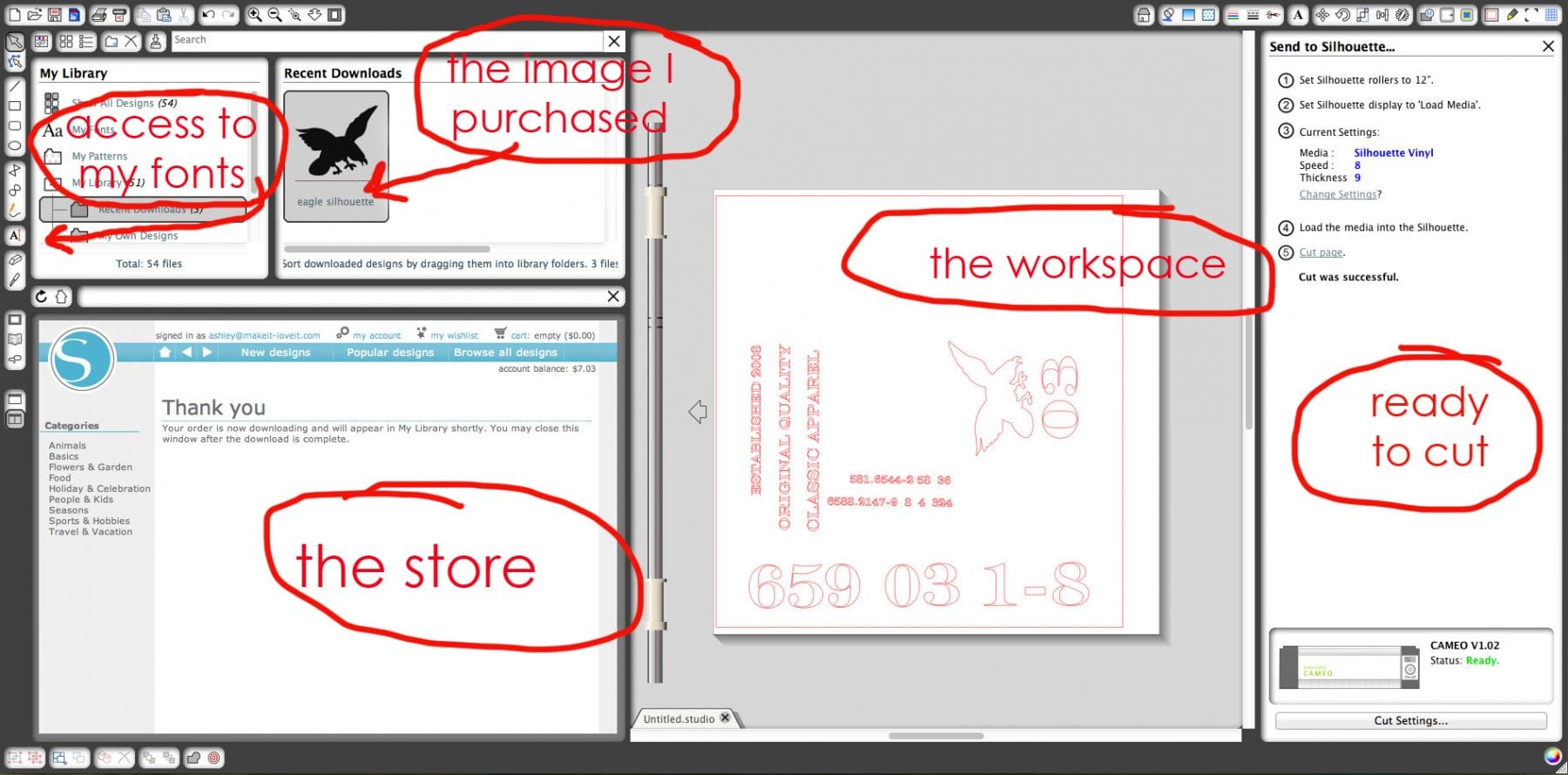 There are many more other things that I love but the last one that really impressed me was their new computer program to work in. It’s more intuitive, more organized, and you can adjust or customize your images so much easier. (Note: You don’t have to have the new CAMEO to use this new program. Just update your old Silhouette program online for free….and you can feel just as fancy in the new program.