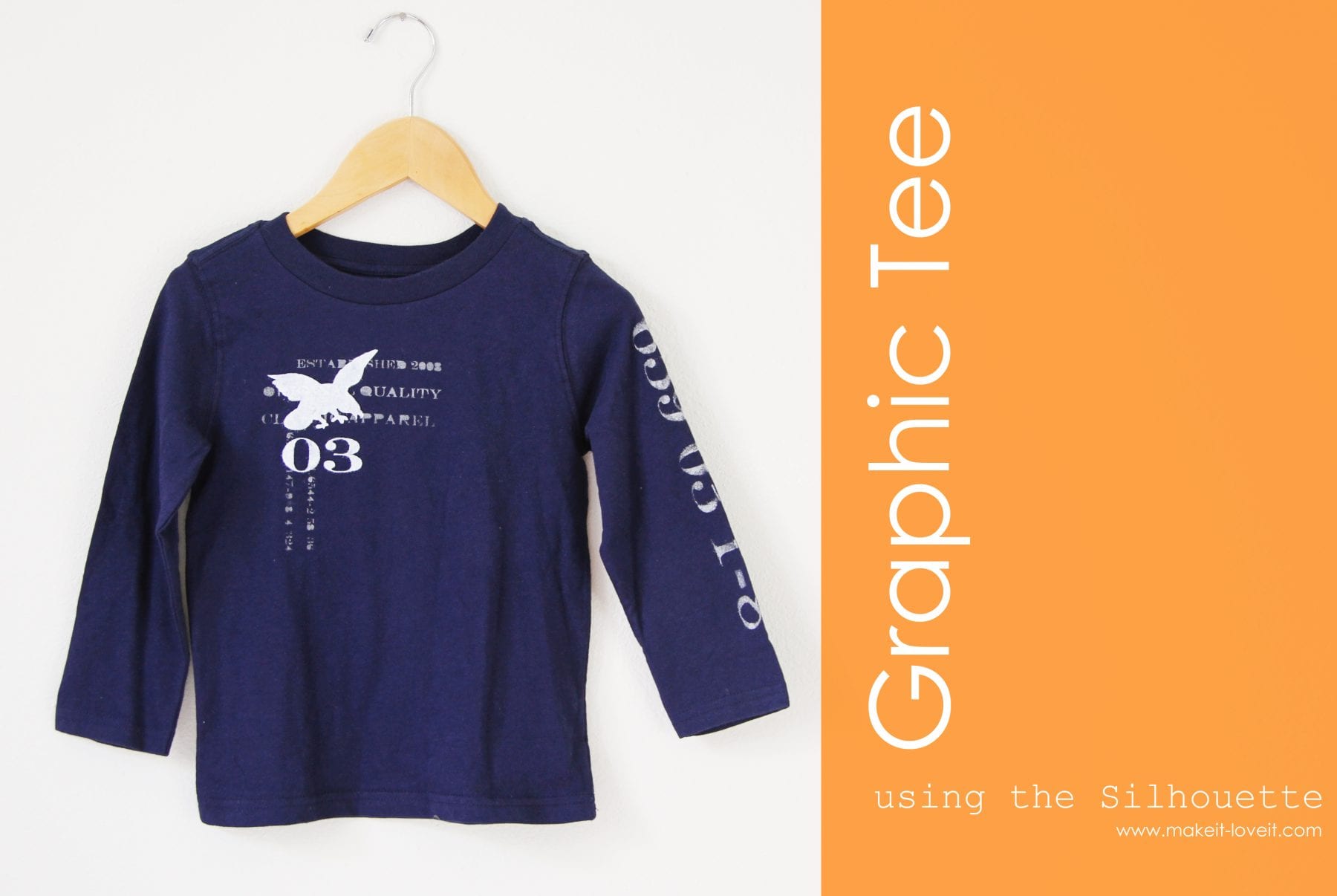 I made this shirt by first creating 3 separate layers that I would use for my stencils. The first first layer on the shirt was just random shirt wording: original quality, classic apparel, etc. The next layer was the eagle with a ’03’ beneath it (because my little boy is 3). The other layer were the random numbers down the side. I matched the 2 layers up on the screen to see how I would like it best, then separated them and arranged them on the screen for cutting.