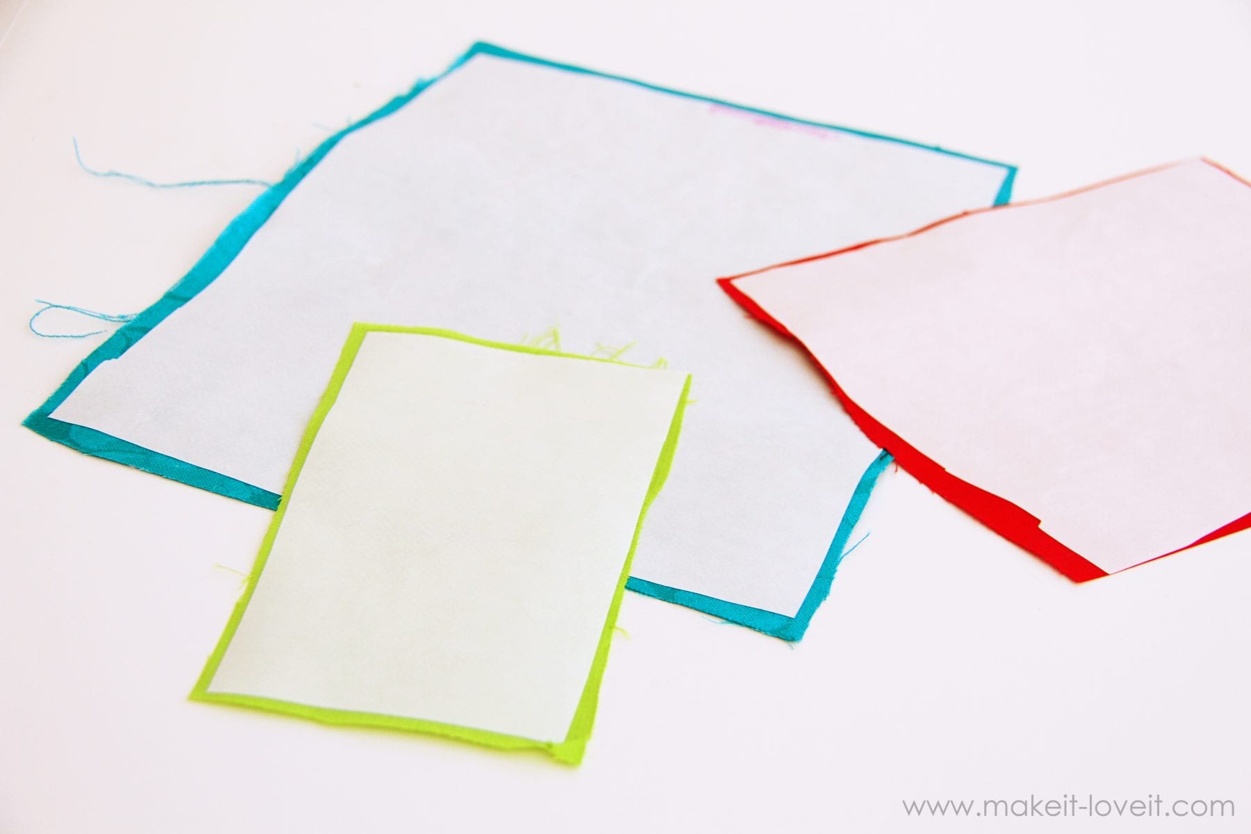 Then iron everything down. Now, stitch around each piece, using a straight stitch or a zig-zag stitch. Using a straight stitch will allow the edges to fray just a bit but that doesn’t bother me any. And zig-zagging takes more time and causes a little bit of bunching and pulling as you sew. But is still totally do-able and if you take your time, looks great.
