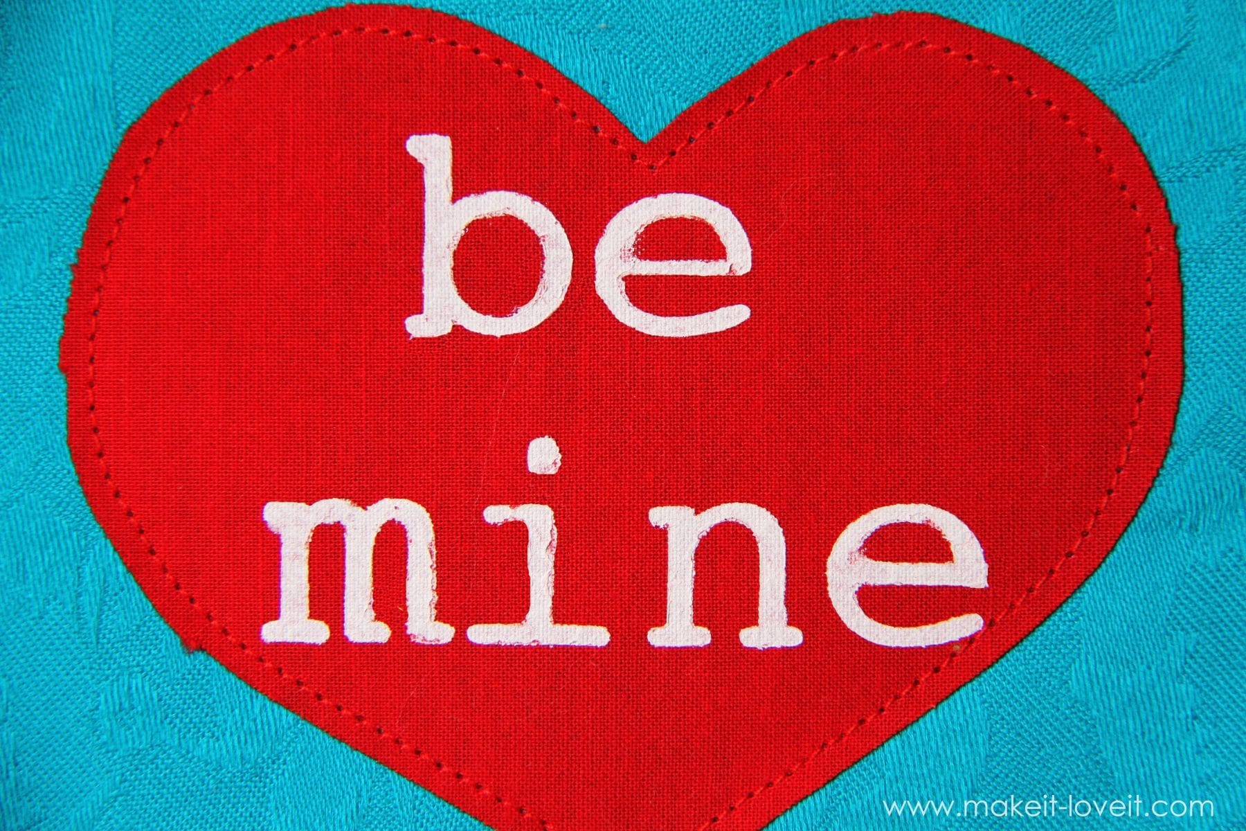A sweet little appliqued monster, holding a BE MINE valentine on his belly.