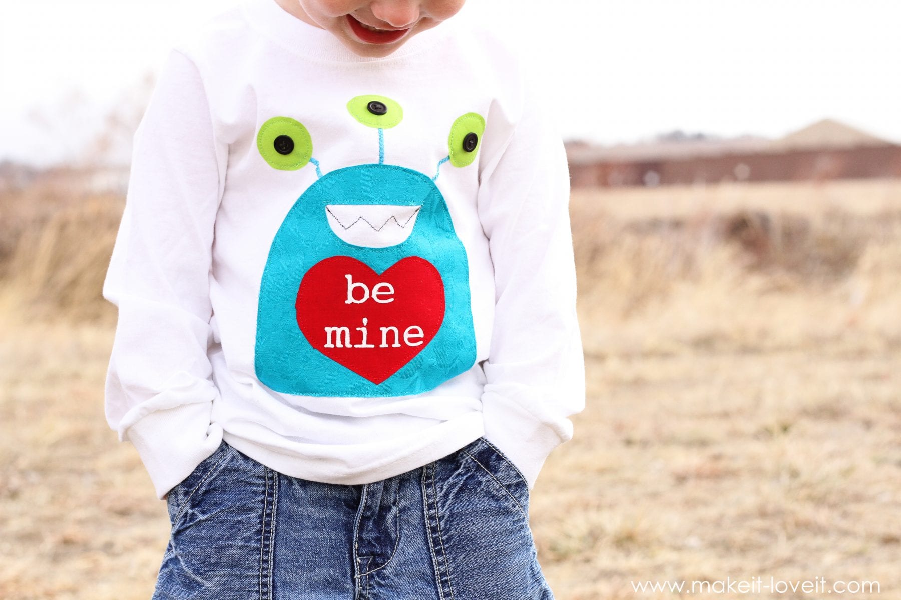 And no joke, once I held the shirt up for my little guy to look at……..he laughed. And then laughed some more. He just got a kick right out of this little Valentine monster.