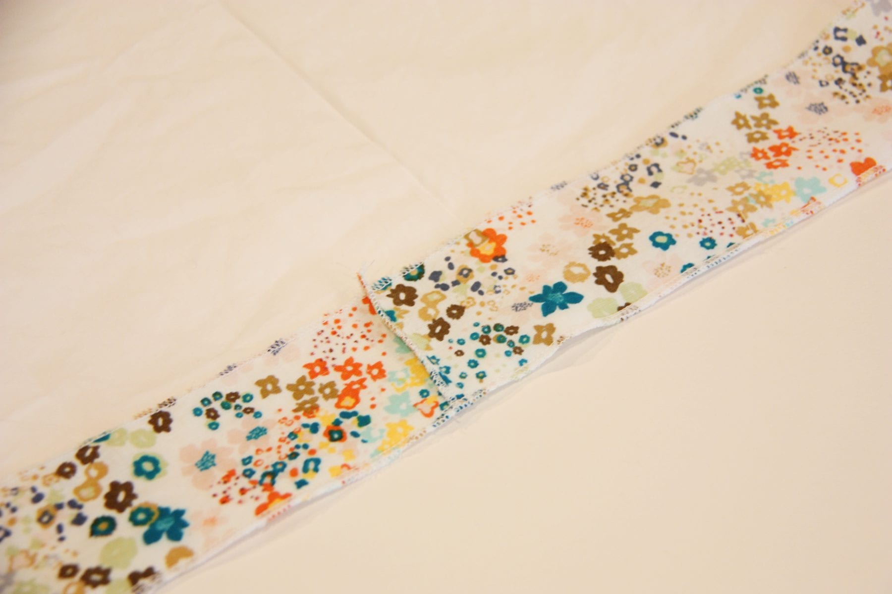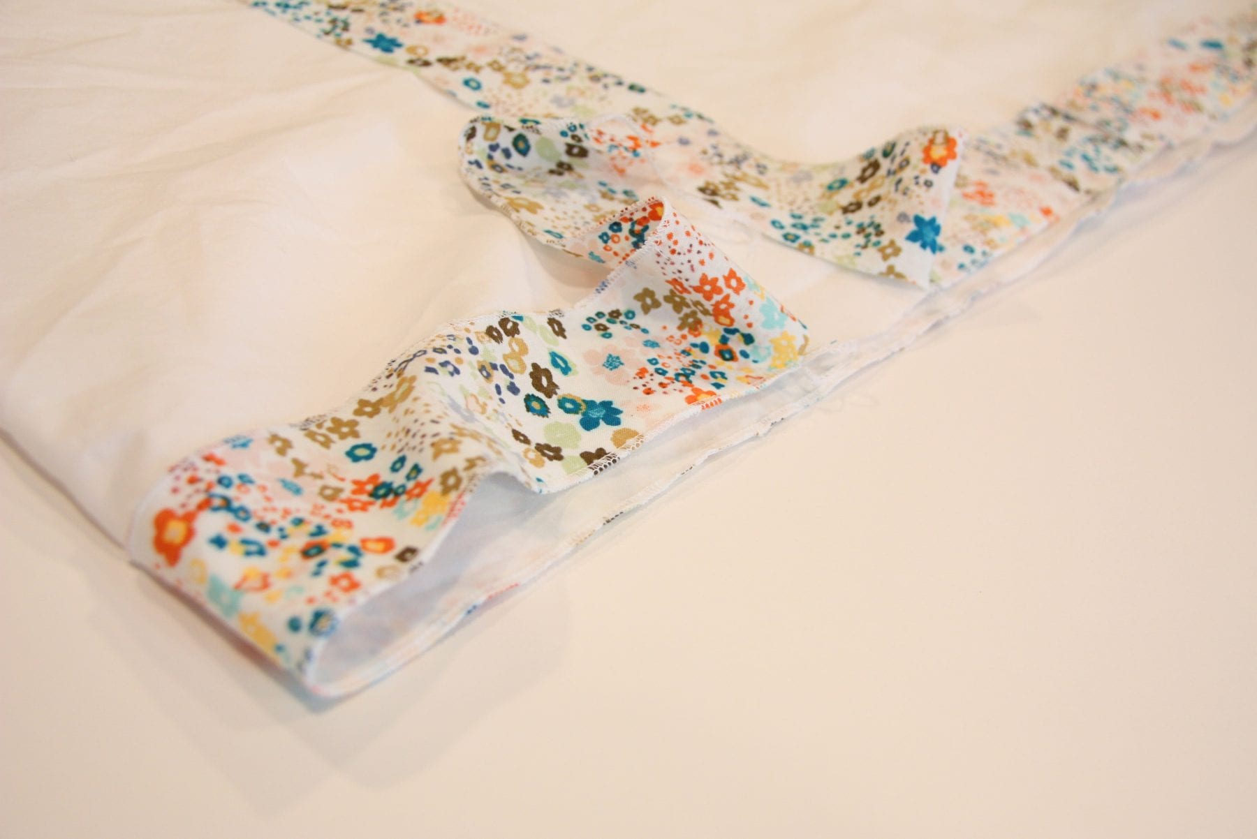 And then sew the rest of the strip down in place. (If you didn’t serge the layers together, go back and finish off this edge with a zig-zag stitch.)