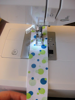 Then turn the ribbon over and fold over a 1/4 of an inch and then another 1/4 inch and sew 2 seams to secure the end.
