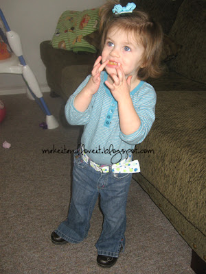 Can I just tell you first why children’s belts are great?!? Well the pants I buy for Elli rarely fit just right and thankfully more and more companies are making their pants with an adjustable waist. However, there are still some that aren’t adjustable and they fall right off Elli’s little bum. So these belts work perfectly. Okay, and they’re so cute. Perfect little splash of color. Yum.