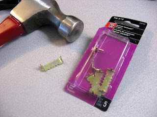 *NOTE* If your frame was a basic piece of wood, there probably isn’t any hardware to hang it from. I bought a package of 5 Hammer Sawtooth Hangers at Wal-Mart for about $1. They look like this…….