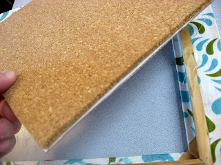 Next, measure a piece of cardboard to fit snugly into the back of the frame where a picture would set. Make sure the cardboard is bigger than the frame opening and goes to the edges of the frame, nice and snug. Then cut a piece of the cork to the same size. You might have to cut 2 pieces of the cork and double it (like I did) if your cork is thin. Hot glue the cork layers together with a minimal amount of glue and then glue the cork to the cardboard.