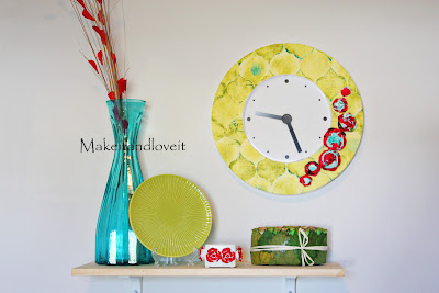 (If you don’t have a flat front clock, you could use a more textured one but use paint to give the clock a new look and then add embellishments of some sort.)Â Take off the cover if applicable.