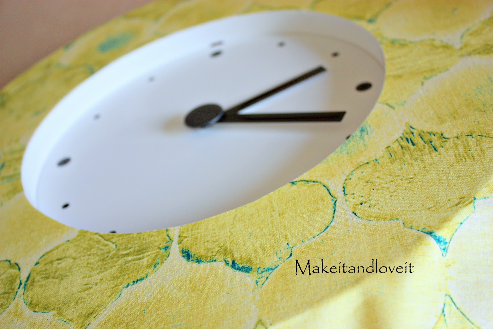 Use a piece of fabric that is larger than the clock and then use the plastic cover to trace the hole that you’ll need to cut out.