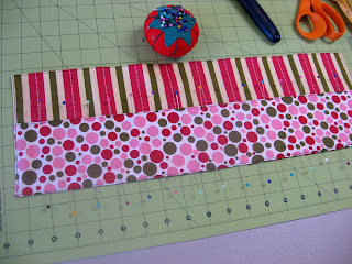 Now you’ll need to pin or mark where you’ll be sewing lines for each crayon compartment. Measure the length of the crayon roll and divide it by how many compartments you’ll need. I wanted 16 slots (15 seams), so I measured and pinned accordingly. You might have to adjust the marks after you have them all in…….if you’re anything like me. Definitely wasn’t perfect the first time. :o)