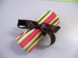 (***Now, after I finished…..I realized some people might not want to see all of those lines on the back, after it’s all rolled up. I don’t mind them at all but if you don’t like them………sew all of your compartment lines before sewing up all the 3 edges together and turning it right side out. Make sense?)
