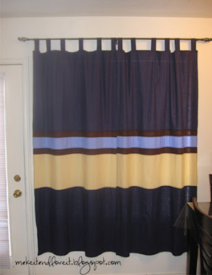 If you want to make stripes of color, make a diagram on paper first of your curtains. Write down the dimensions and then the divide your curtains into different sections and decide the dimensions of each stripe and the color. Add 5/8 inch around all of the edges and start cutting. Sew each strip together first and then after assembling the whole curtain, trim the edges to make them even. Then iron all of your seams open and then turn under each seam edge once and sew a seam. (This just makes it look finished and sharp.)