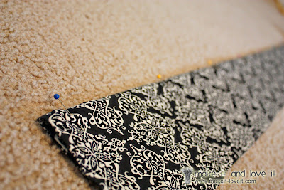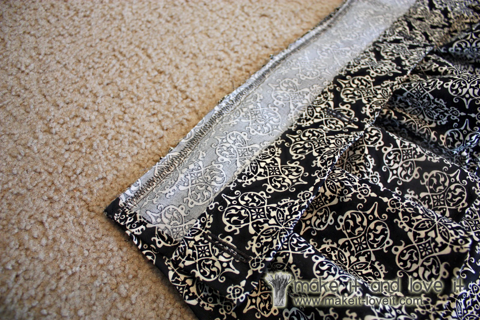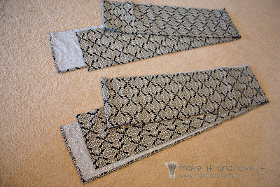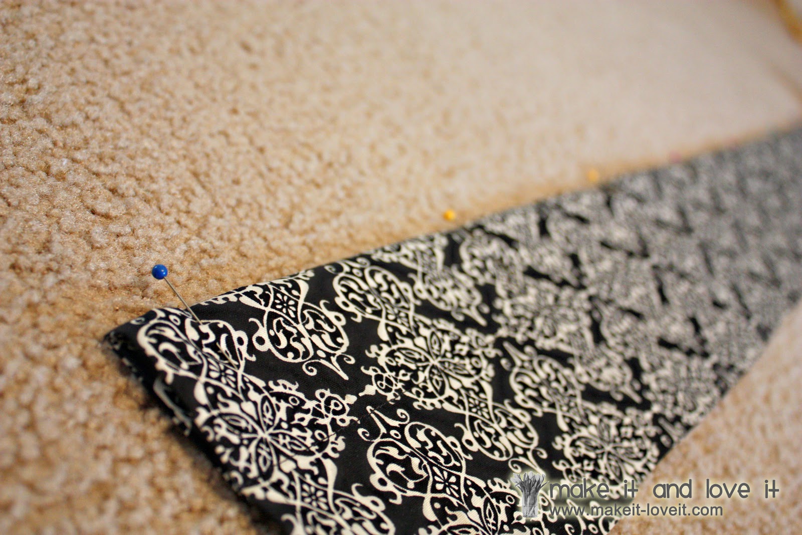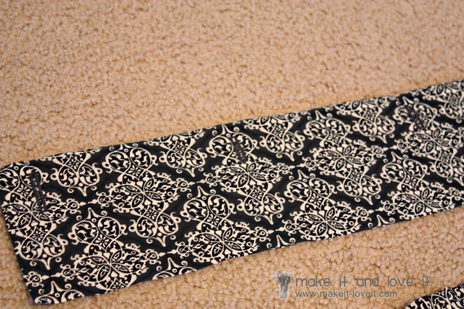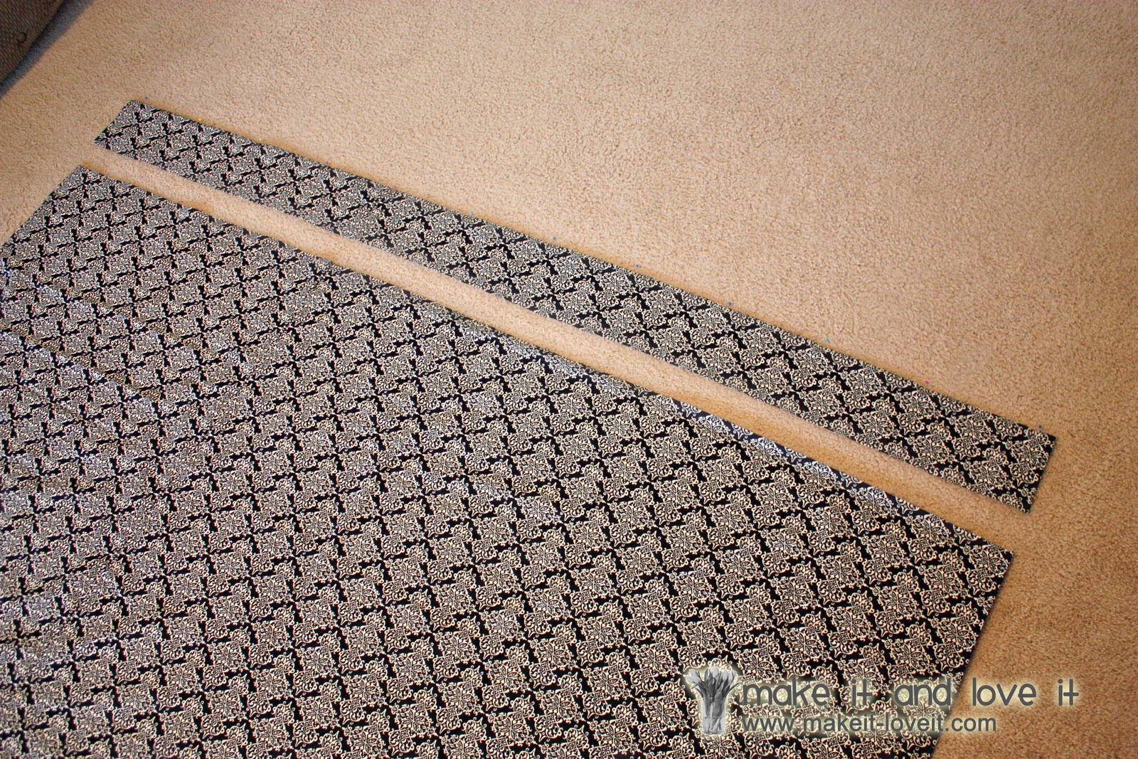 I made 2 strips of fabric (from the section that I cut off and then some extra I had) that were 9 x 138 inches. I had to piece together several different pieces to make a piece long enough.