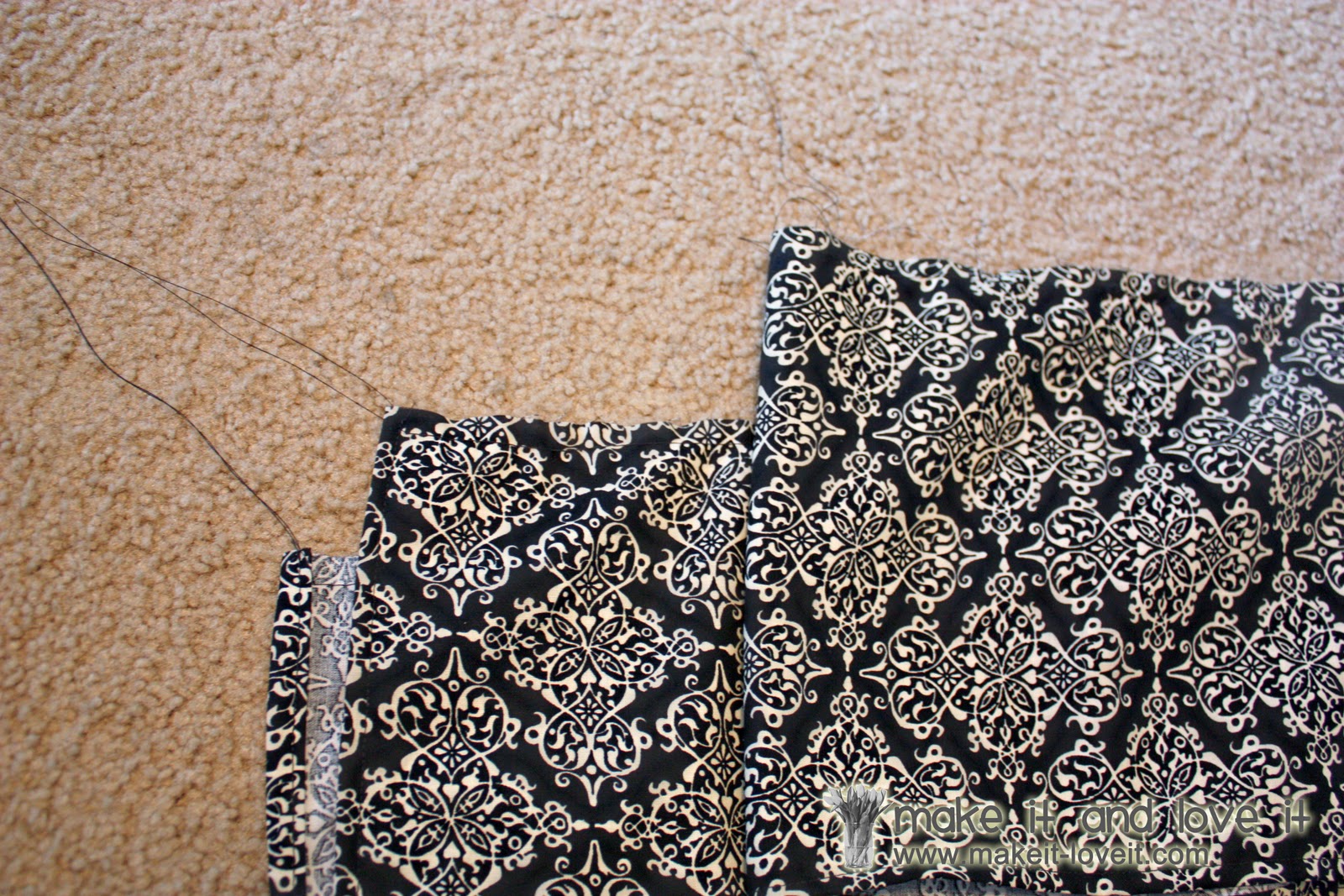 Then I folded the top down 2 inch, ironed flat, folded down another 2 inches, ironed flat again, then sewed into place along the bottom edge.