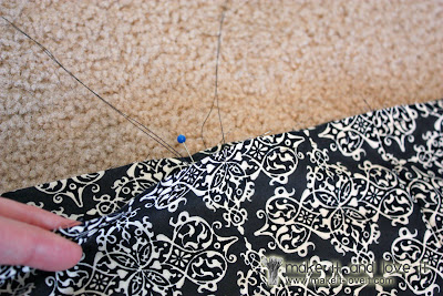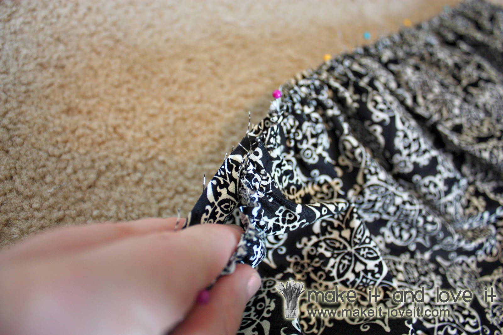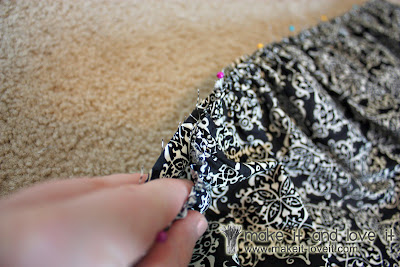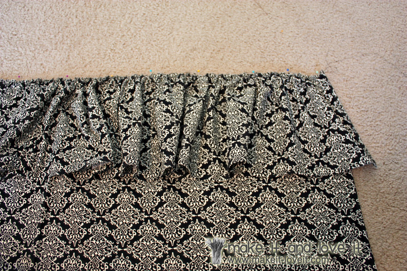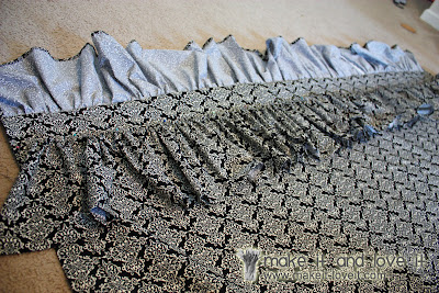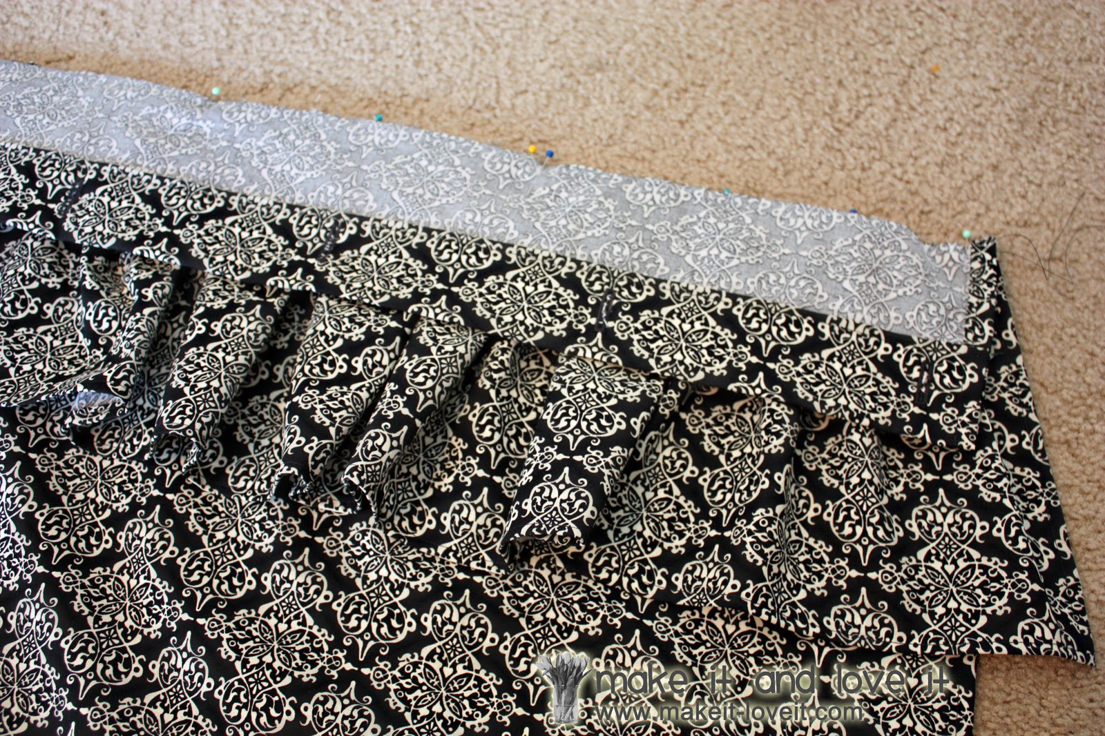 And pin the ruffled piece to the main shower curtain piece, every few inches.