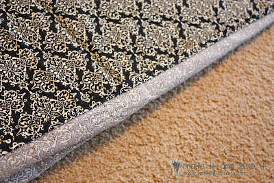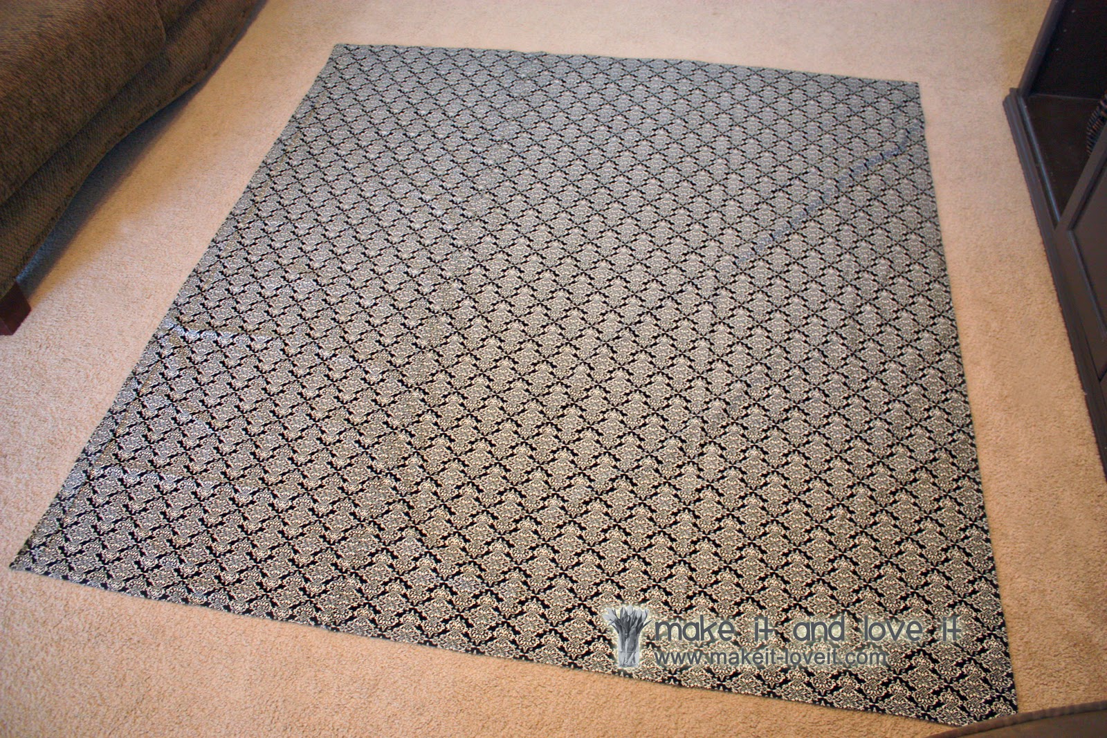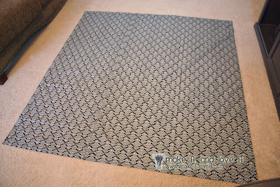 To do this, I sewed 2 pieces together lengthwise that were a little over 2 yards a piece (or 75 inches), and then trimmed off the excess along one side, so that the large piece would only be 68 inches wide.