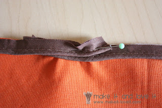 bias tape piping. (One package of 2 1/2 yards was plenty for me.) I started pinning the piping to the middle of one of the sides of the pillow, making sure to line up the raw edges of the piping with the raw edges of the pillow.Â