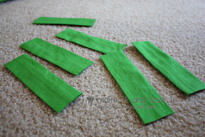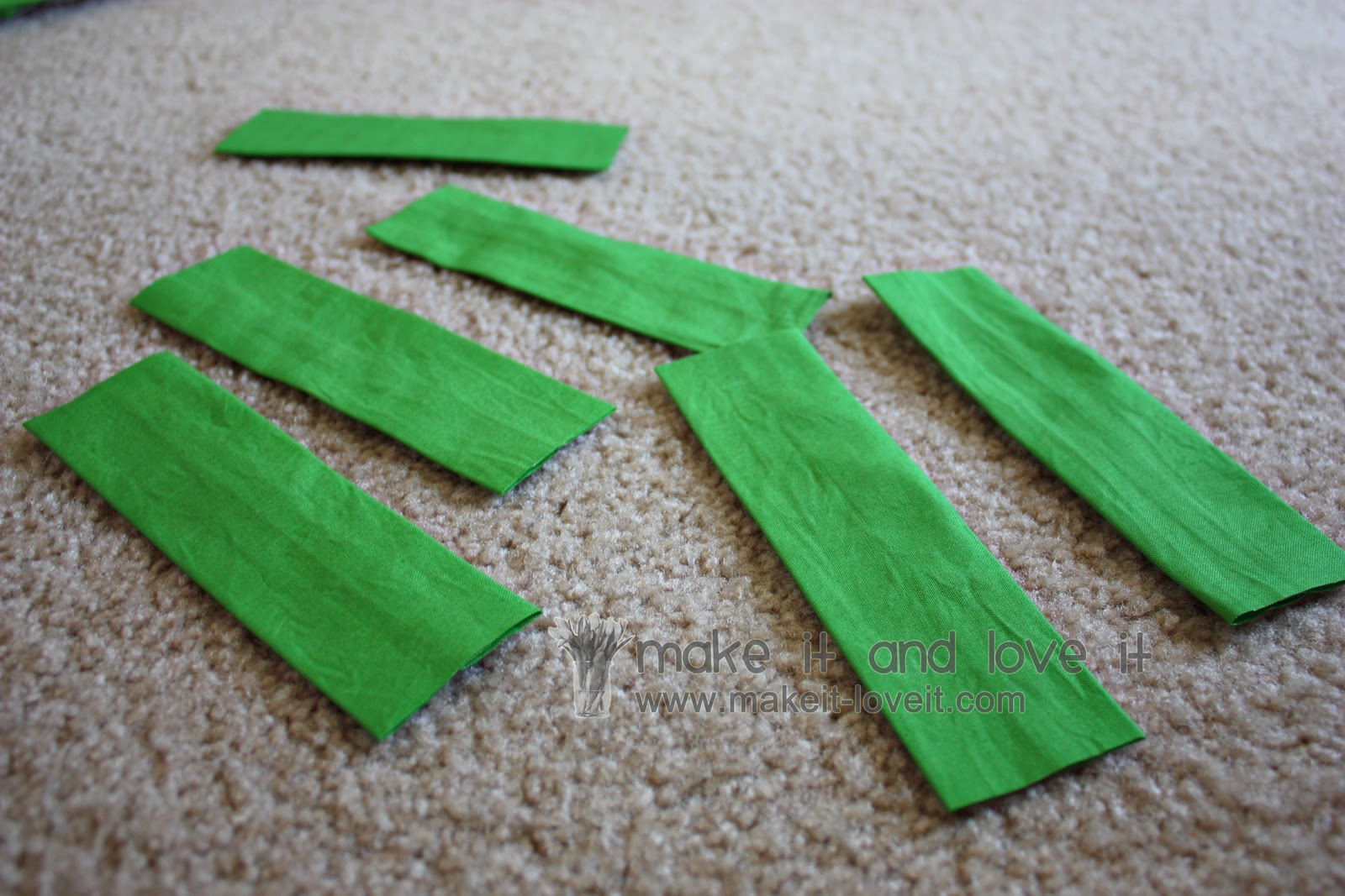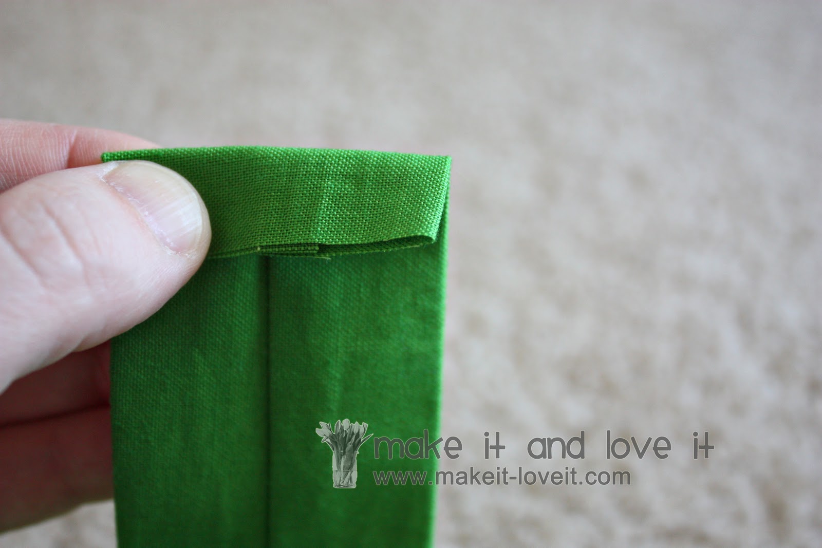 Then cut a piece of fabric that is 4 x 36 inches, sew it into a long tube with a 1/4 inch seam allowance, turn right side out, and press with the seam along the back. (Click
