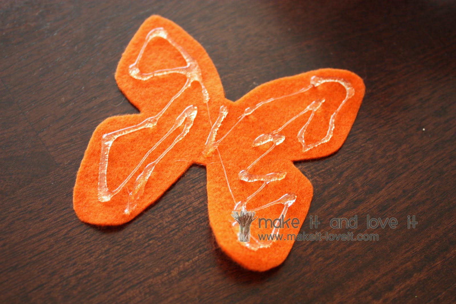 On one side of one of the butterflies, I placed a good amount of hot glue……