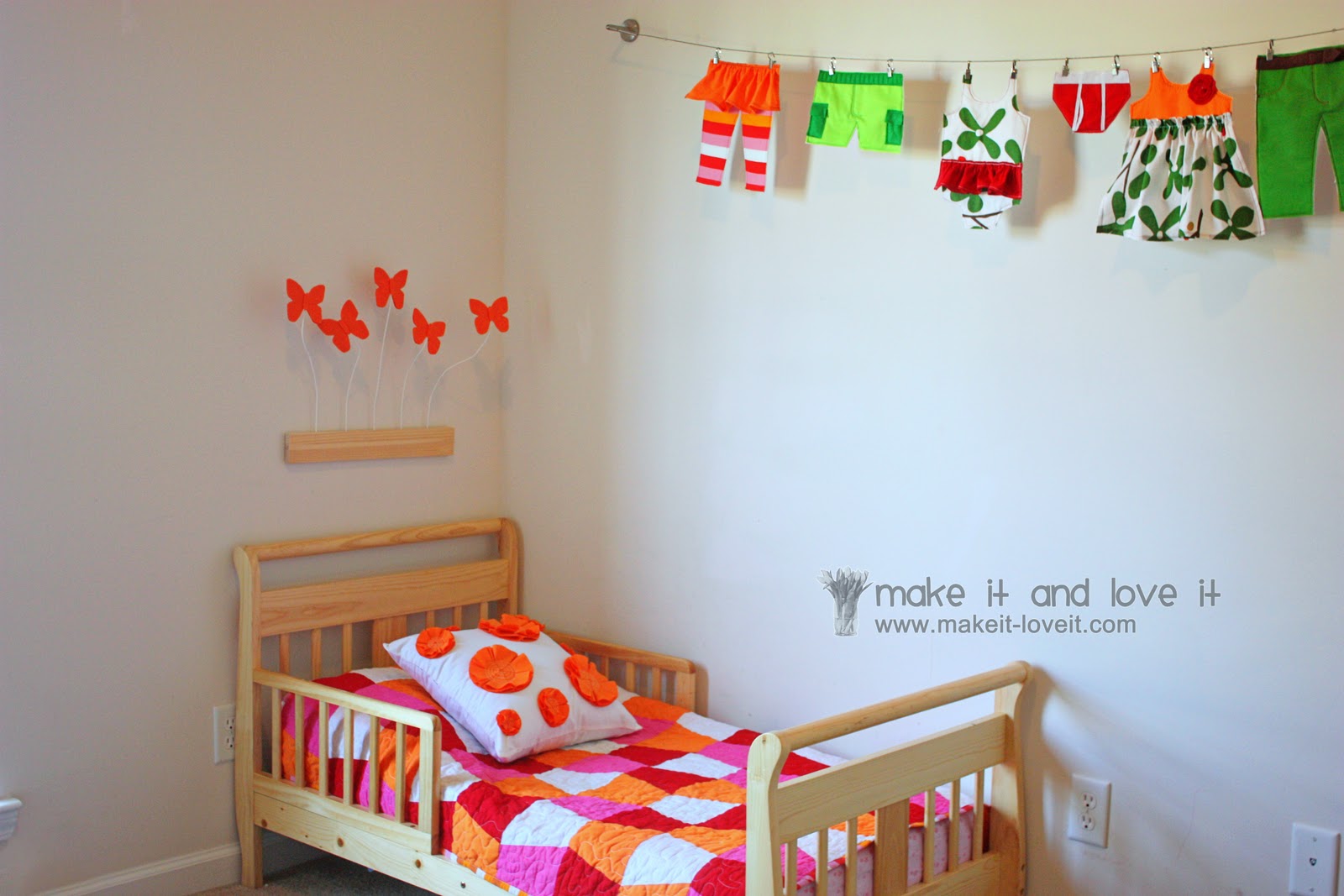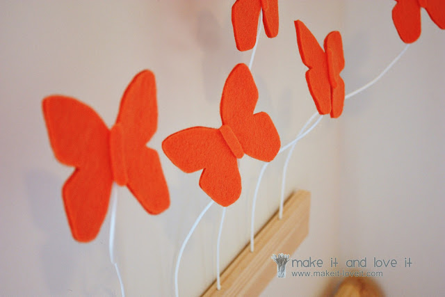 And then I hung the simple little butterfly decoration right above my little girl’s bed.