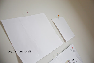 And then used little straight pins to attach my papers to the wall. My walls are white, so you can’t even see the little pin pricks….but you could use that wall tacky stuff, or a teeny bit of tape (careful that it’s not too sticky or it will pull your paint off) to place your papers on the wall.