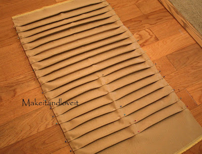 The fabric I used was sort of satin-y so the folds didn’t stay ironed perfectly well. (If using a lightweight cotton, you shouldn’t have the problem I did.) So I sewed the folds in place at the sides and kept the center pinned…….