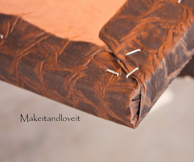 Then I cut a piece of material slightly bigger than my form, making sure to have enough excess fabric to fold around the back. Pull fairly tight and staple in place…..