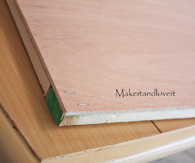 So I bought a piece of underlayment from Home Depot. I have no idea what it’s intended for but it was $5 for a 4 x4 foot piece………..just perfect for my budget. (all of you carpenter minded folks……just keep the laughter minimal.) It’s super thin and some sort of pressed wood. I cut three pieces that were 15 x 30 inches.