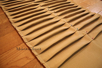 For the center gold wall hanging………I made folds in my piece of fabric and pinned and ironed as I folded.