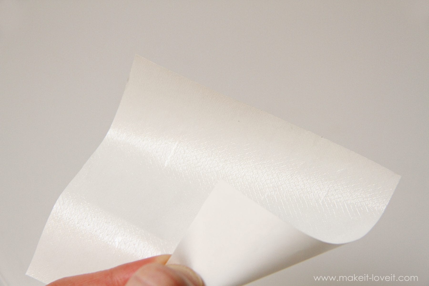 Now, this variety has a sticky back on one side. So you just have to peel the paper backing off and it exposes the temporary adhesive that’s on one side. (Feels kinda like a sticker.)