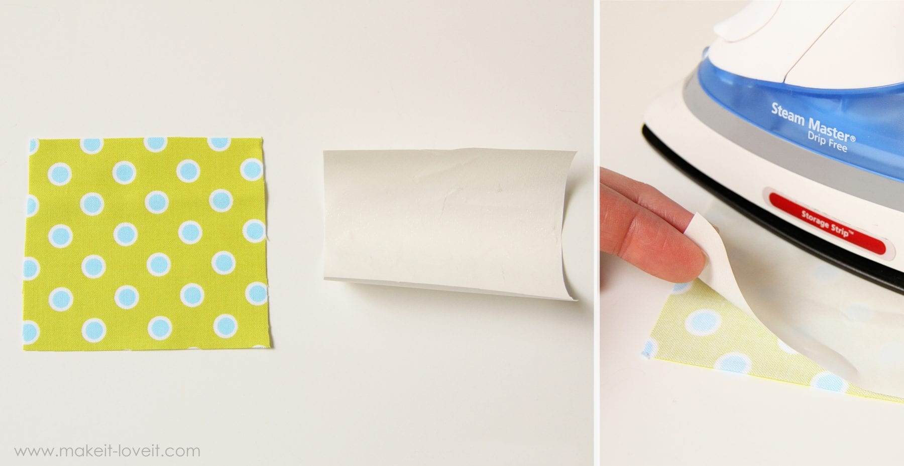 Now, remember that this webbing stuff can be placed in the middle of your two layers without ironing one side first, like the adhesive shown above.