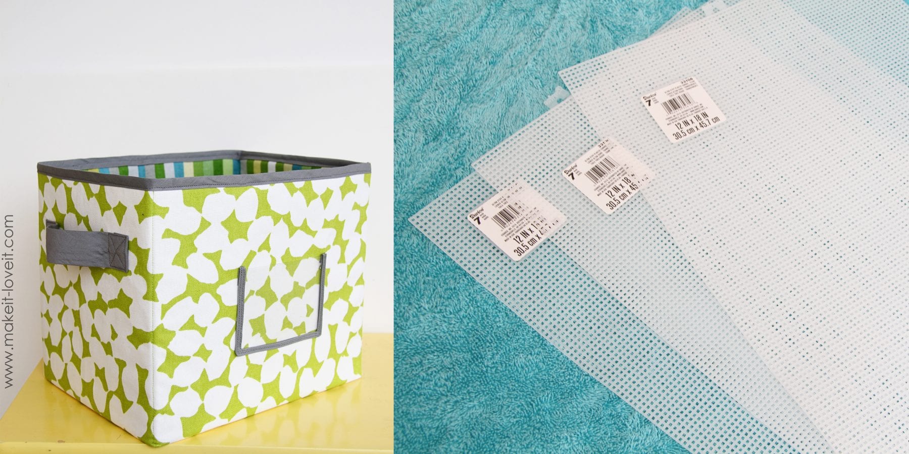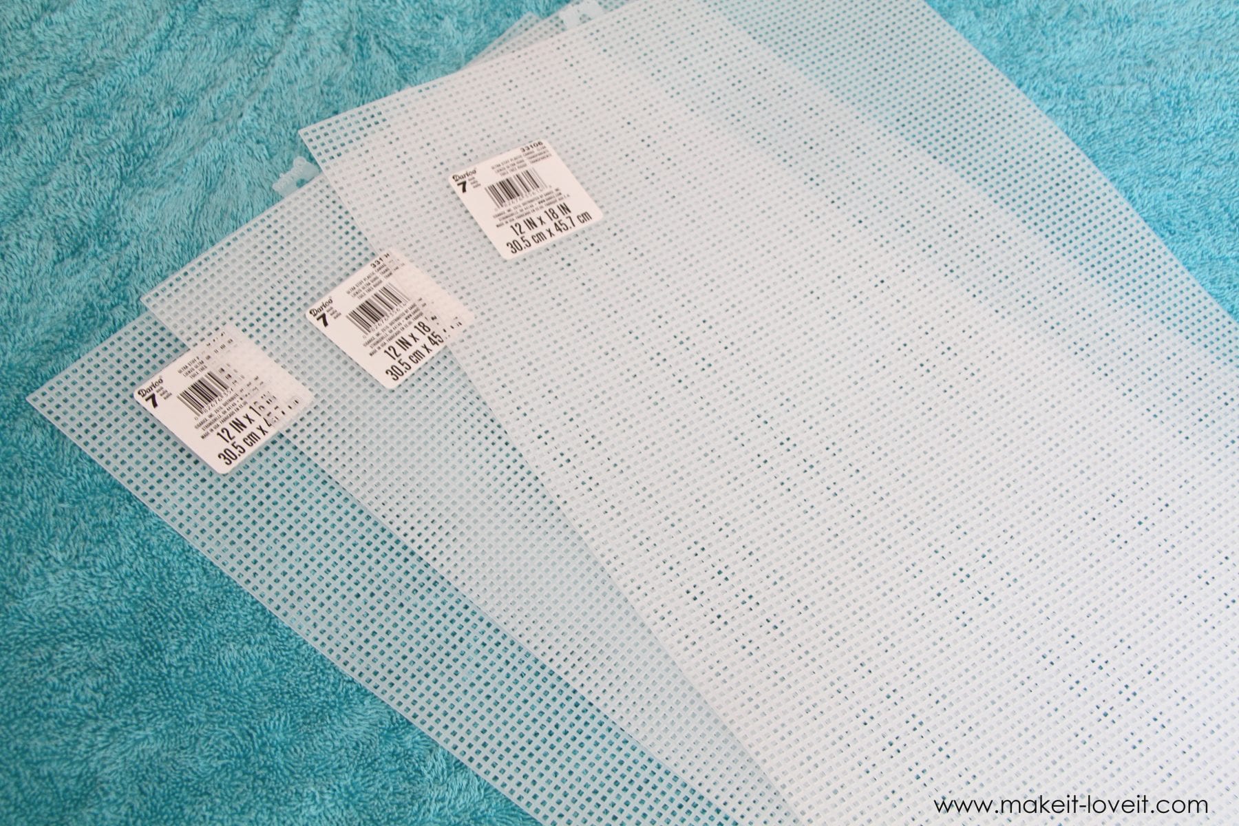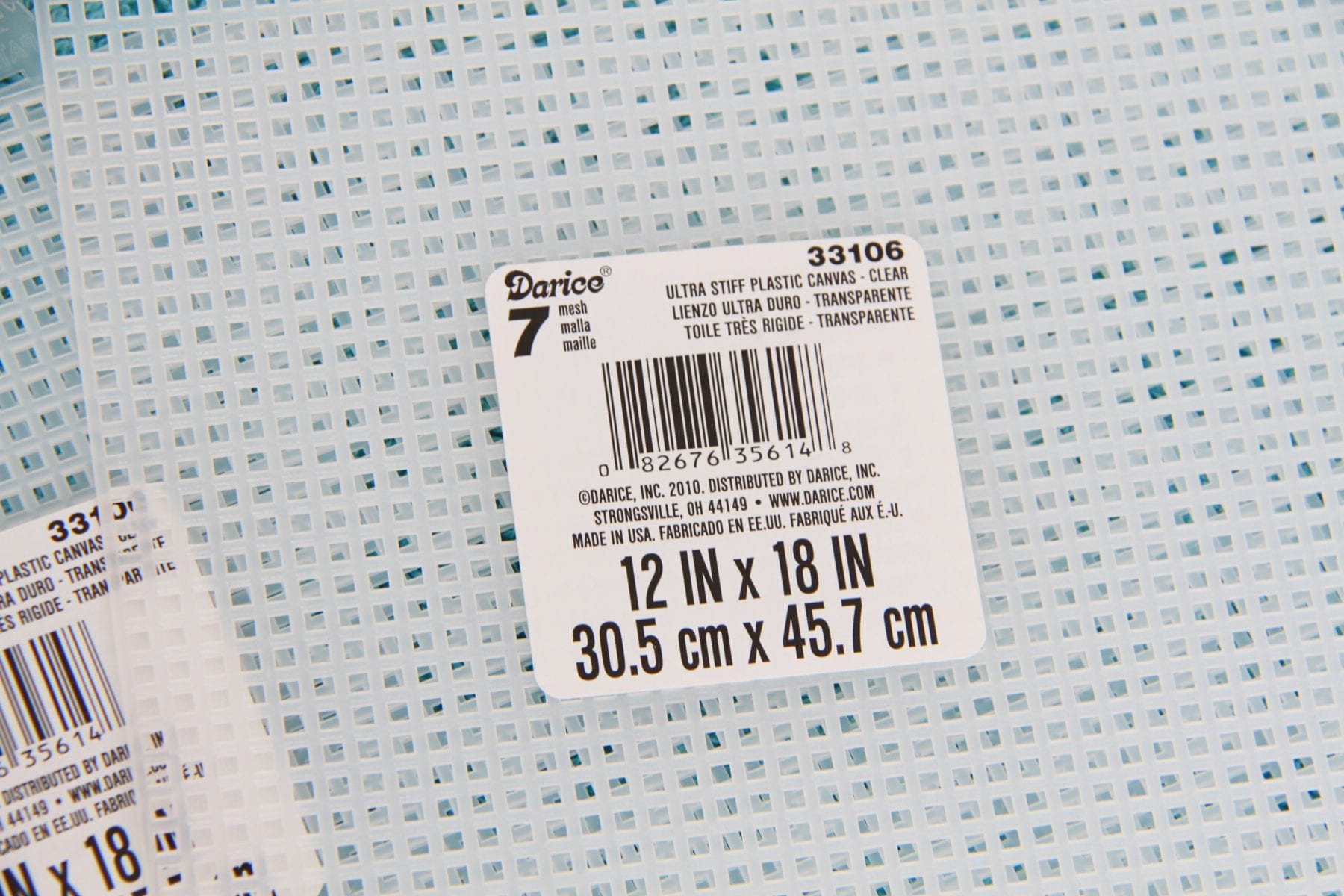 But this is the type of canvas I bought.  (It’s that stuff that you can sew through with a needle and yarn and create designs and book covers and such.)  And if you click on it to enlarge it, it says that it’s ultra stiff plastic canvas.  The sturdier the better because you want your boxes to have good shape.