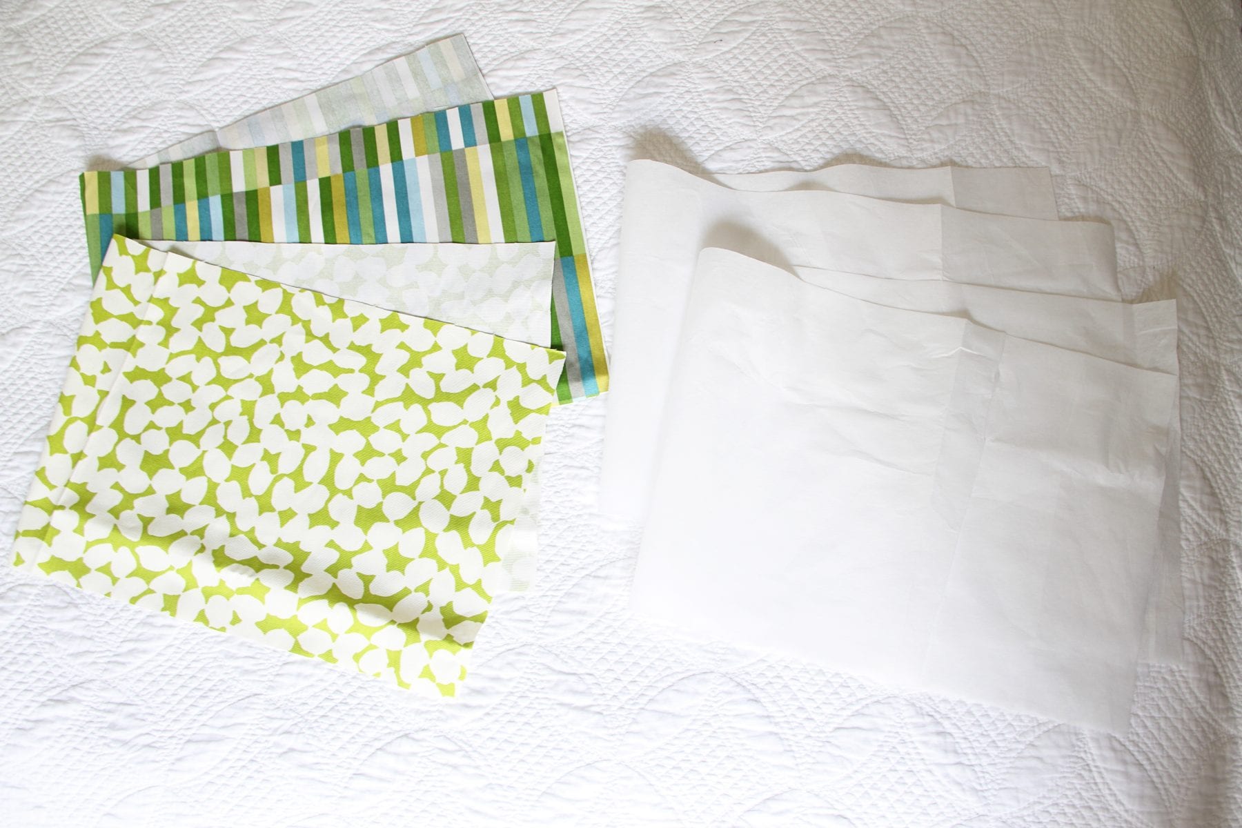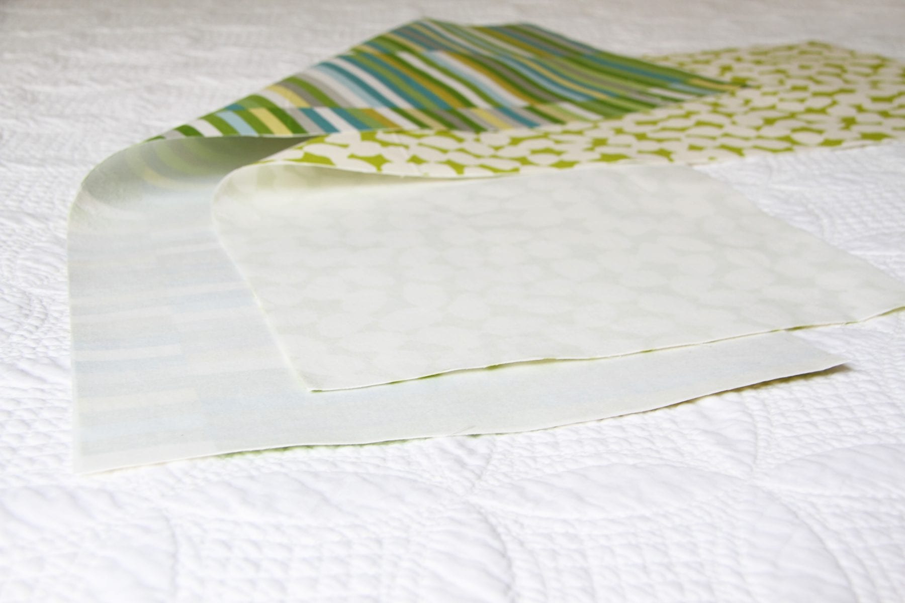 Then iron the interfacing to the “wrong” side of the fabrics.