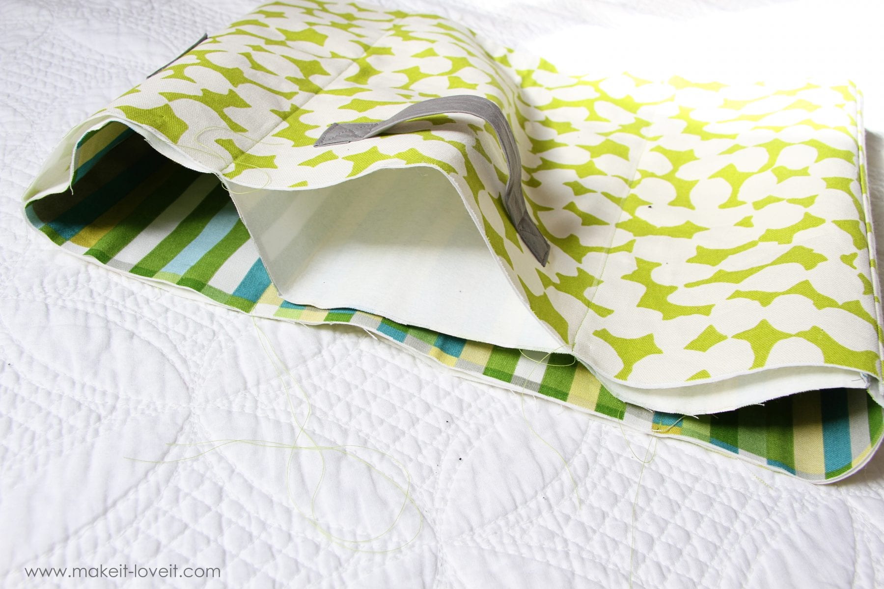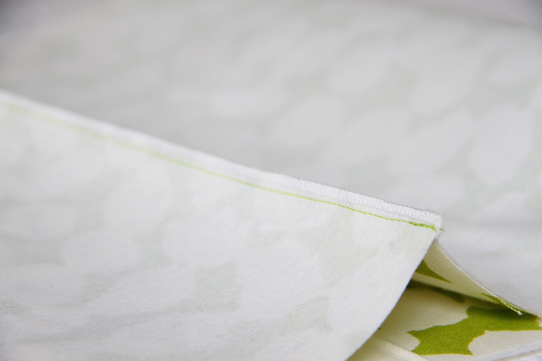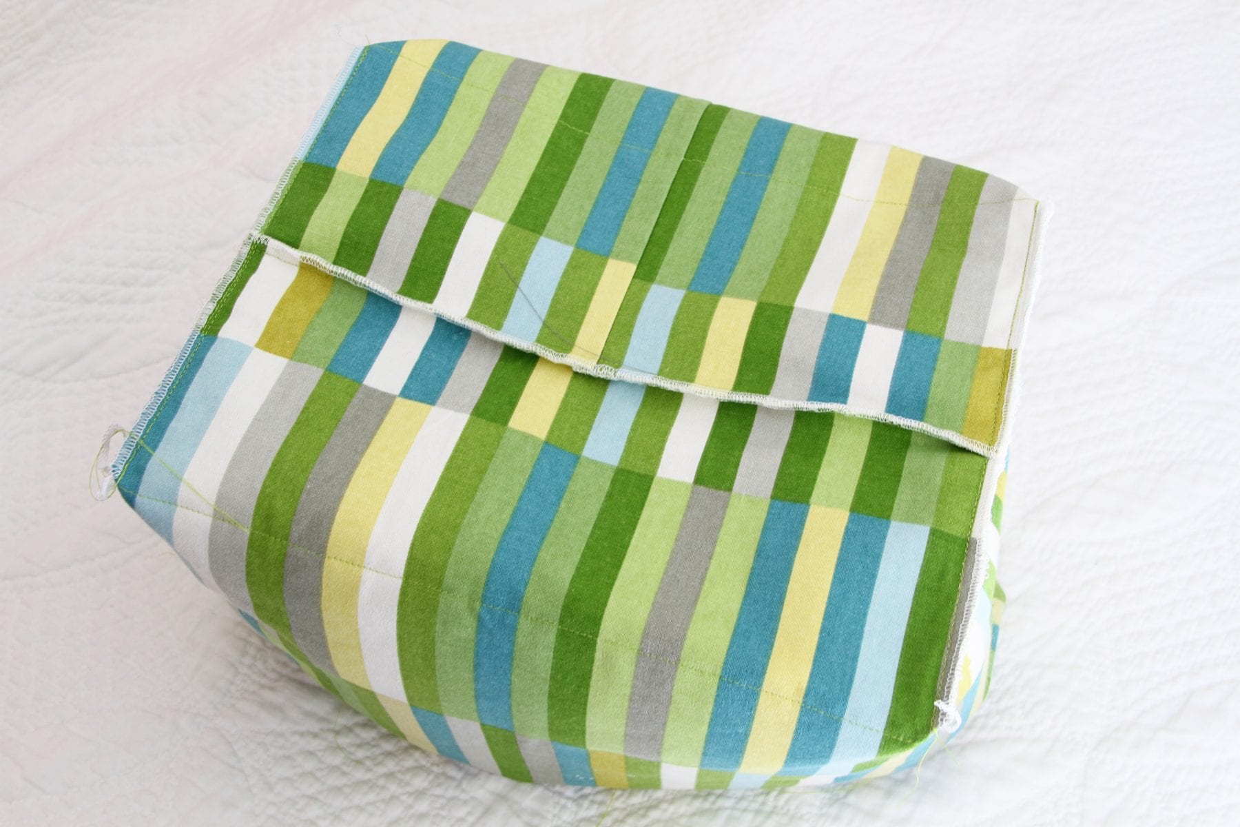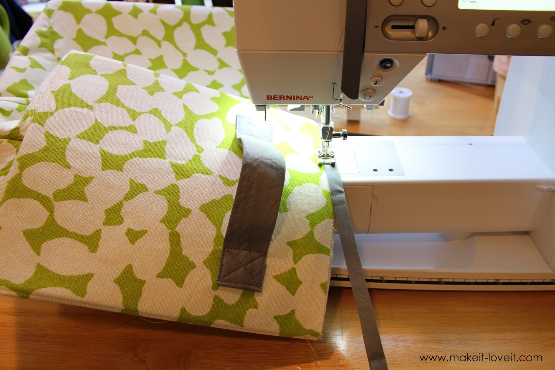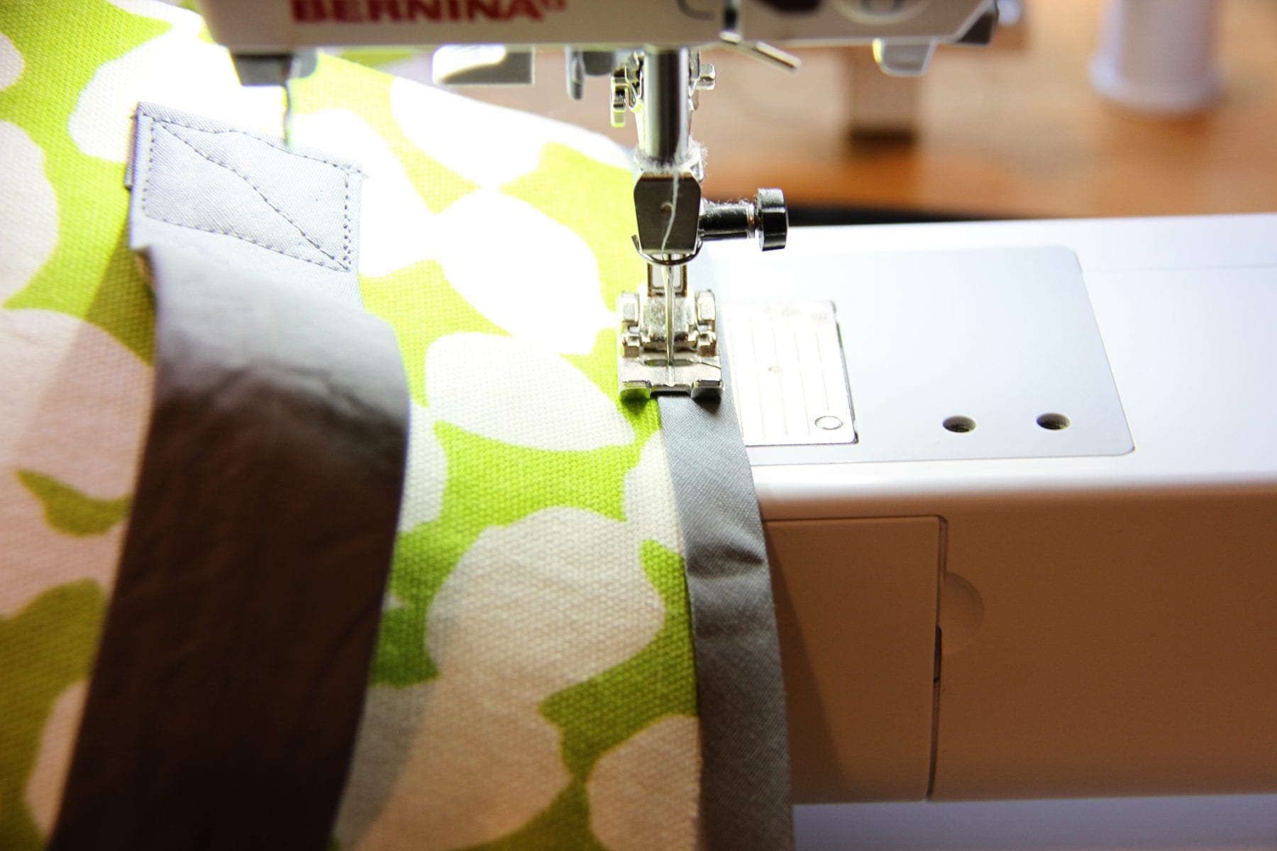 Then attach some 1/4 inch double folded bias tape to the edges.  (More on bias tape here.)
