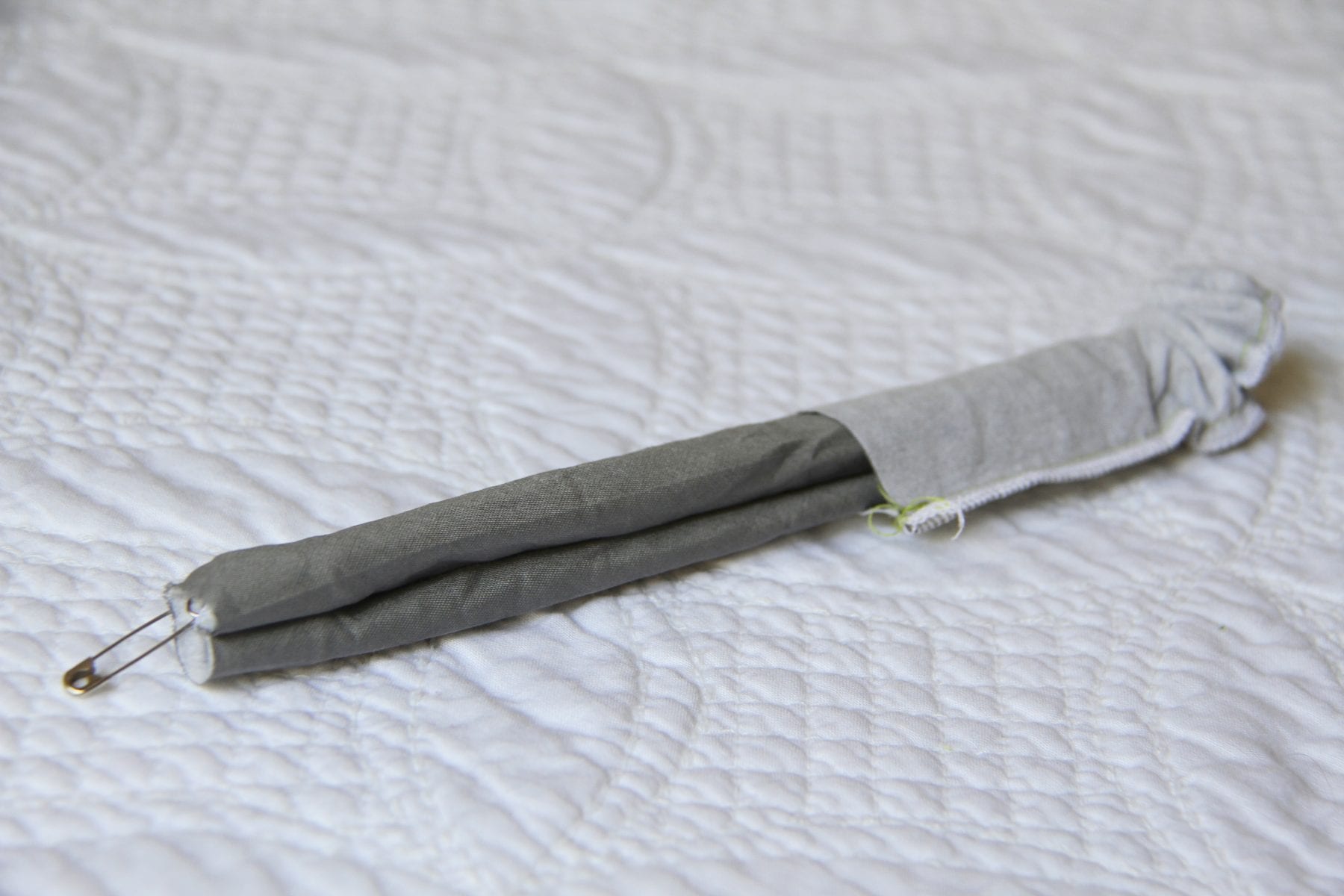 Then sew both fabric pieces into tubes, sewing the two shorter ends together with right sides together.