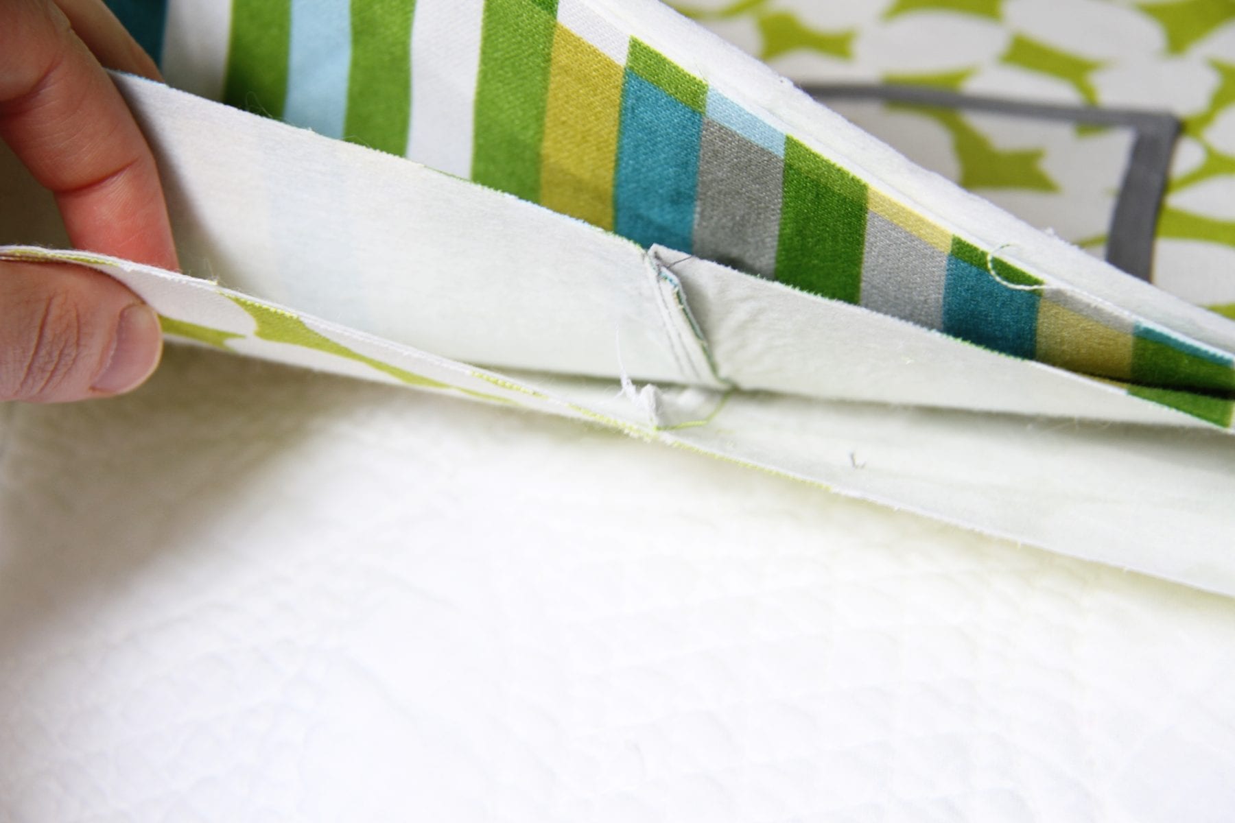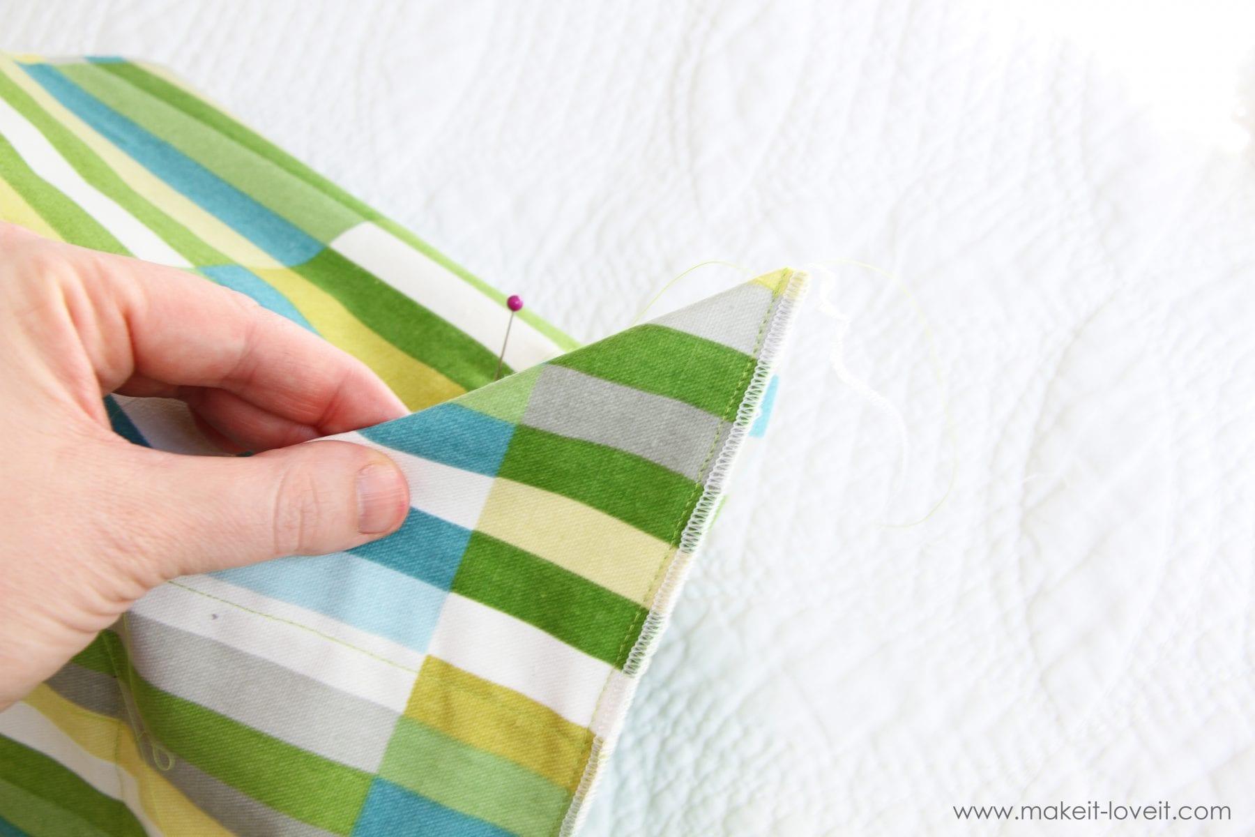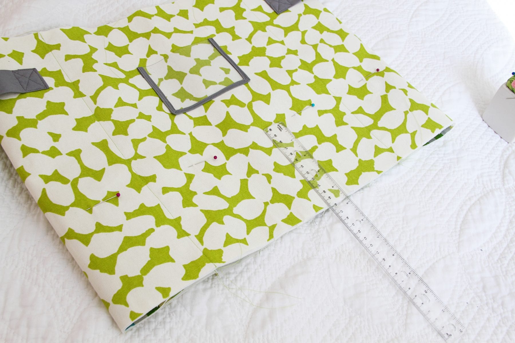 Now, look at the bottom corners.  Place a pin right at the side where that seam (that is 4 3/4 inch from the bottom) hits the side.